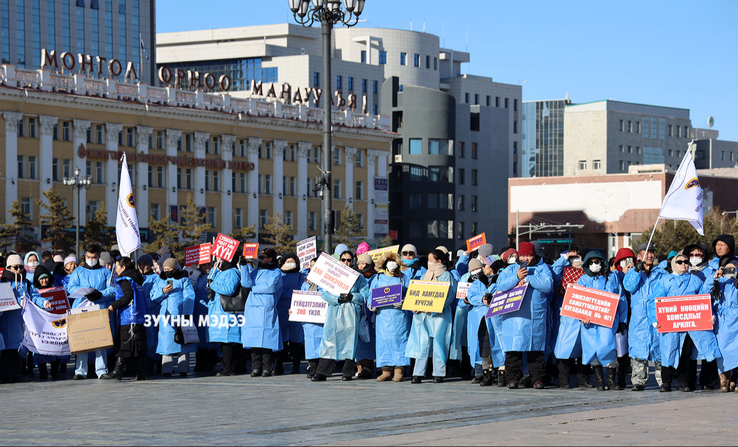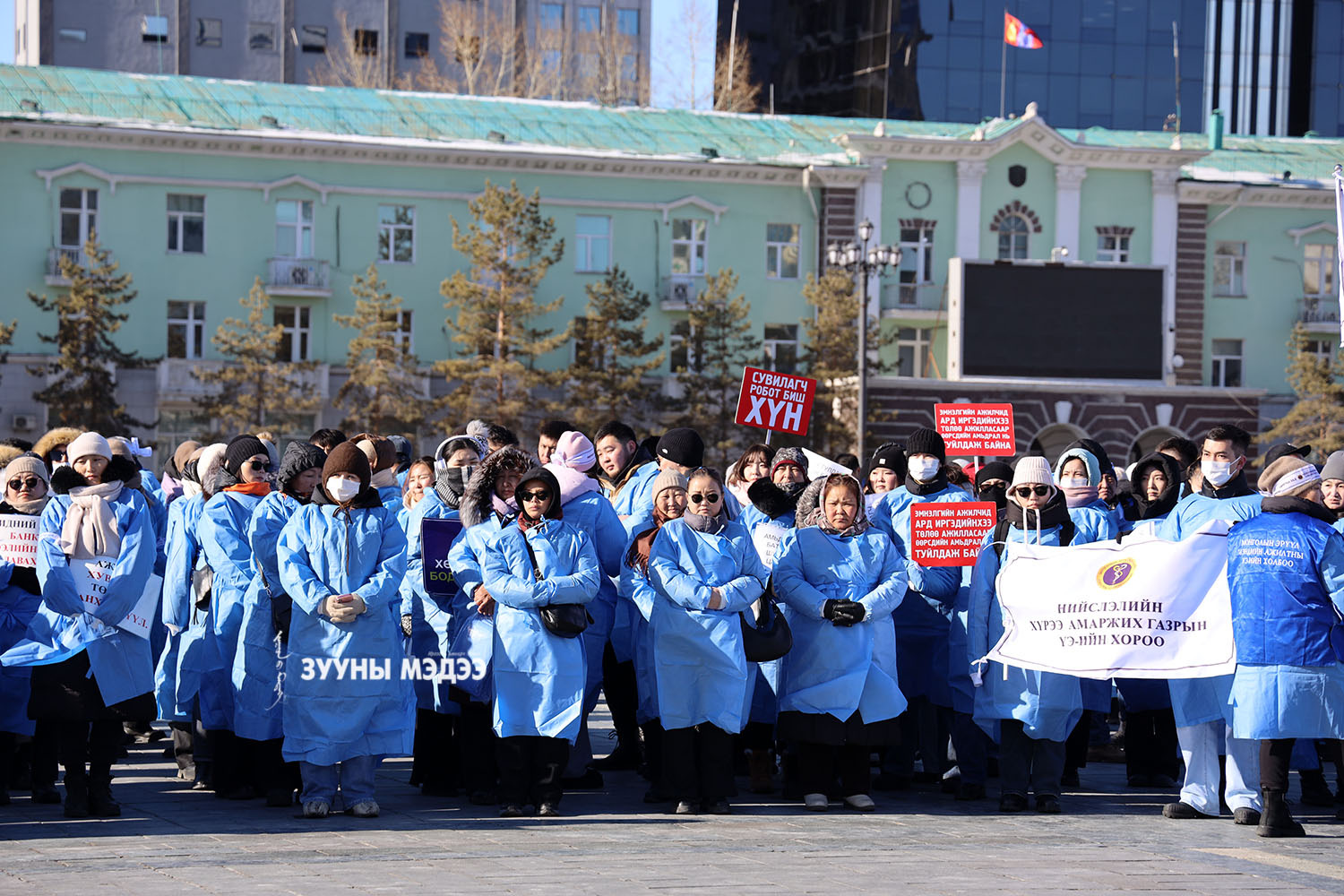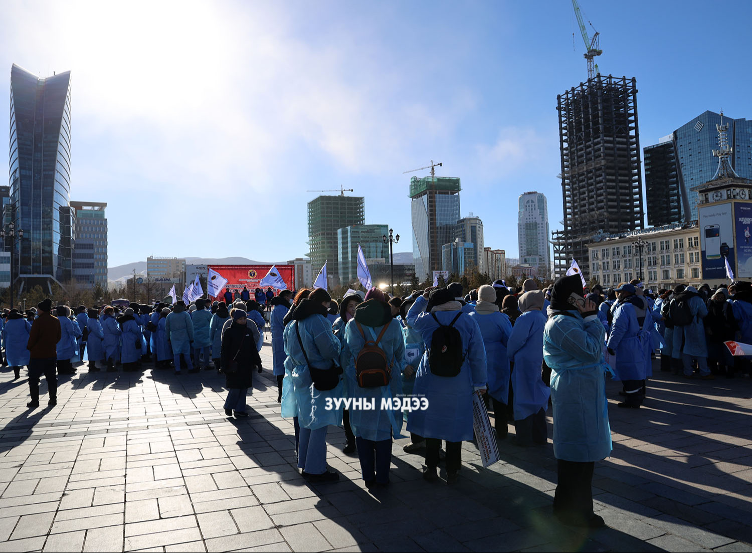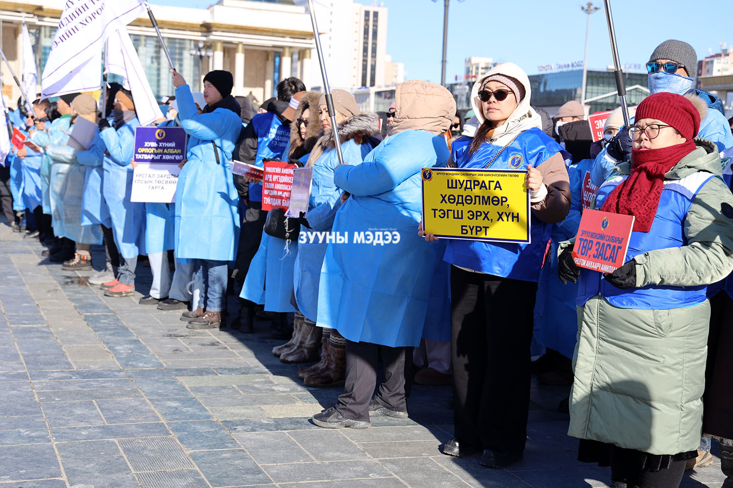 Эмч, ажилтнуудын "Дахин тэвчихгүй" эсэргүүцлийн жагсаал цуглаан өнөөдөр Сүхбаатарын талбайд боллоо. Энэ үеэр Монголын эрүүл мэндийн ажилтны үйлдвэрчний эвлэлийн холбооноос тохиролцоонд хүрч чадахгүй бол маргаашаас орон даяар албан ёсоор ажил хаяхаа мэдэгдсэн юм. Энэ талаар гэрэл зургийн сурвалжилгаас харна уу.