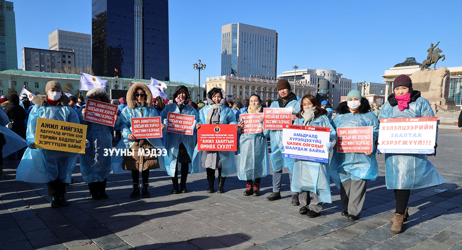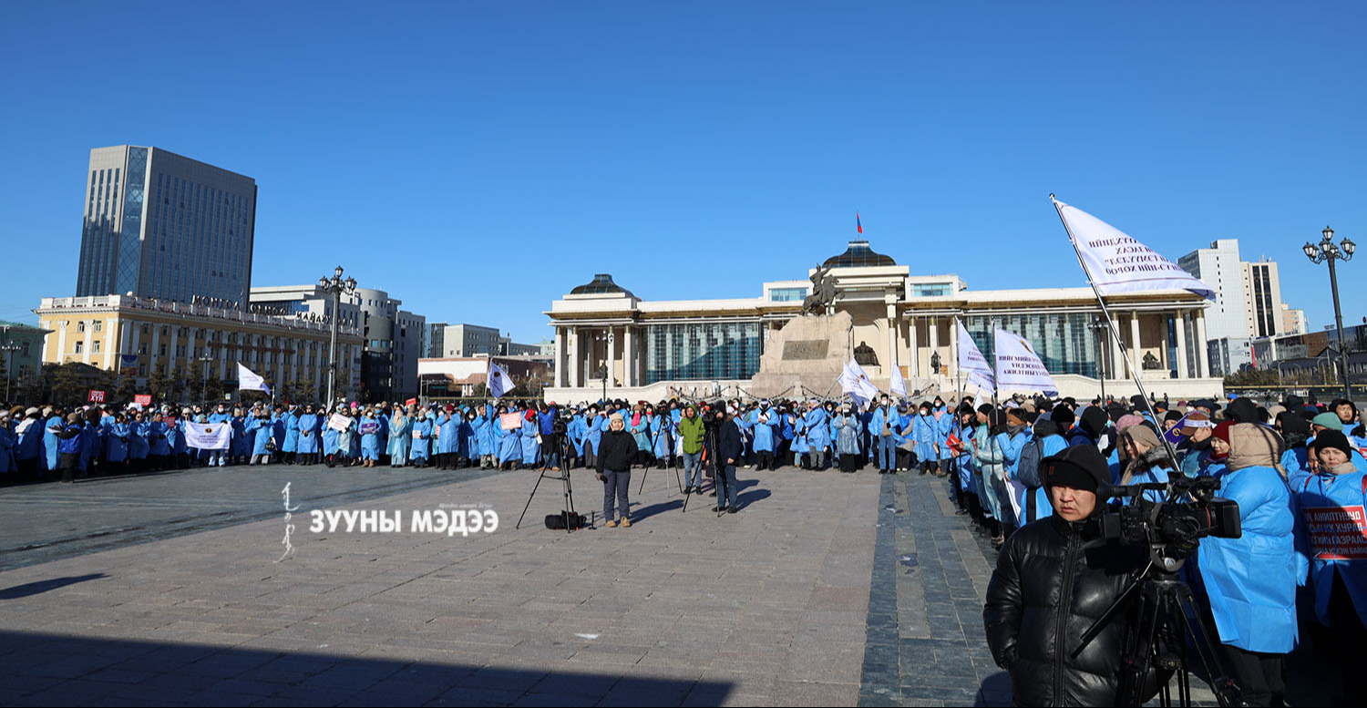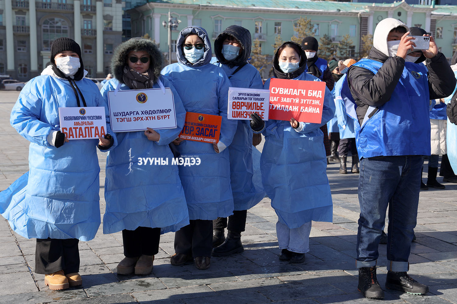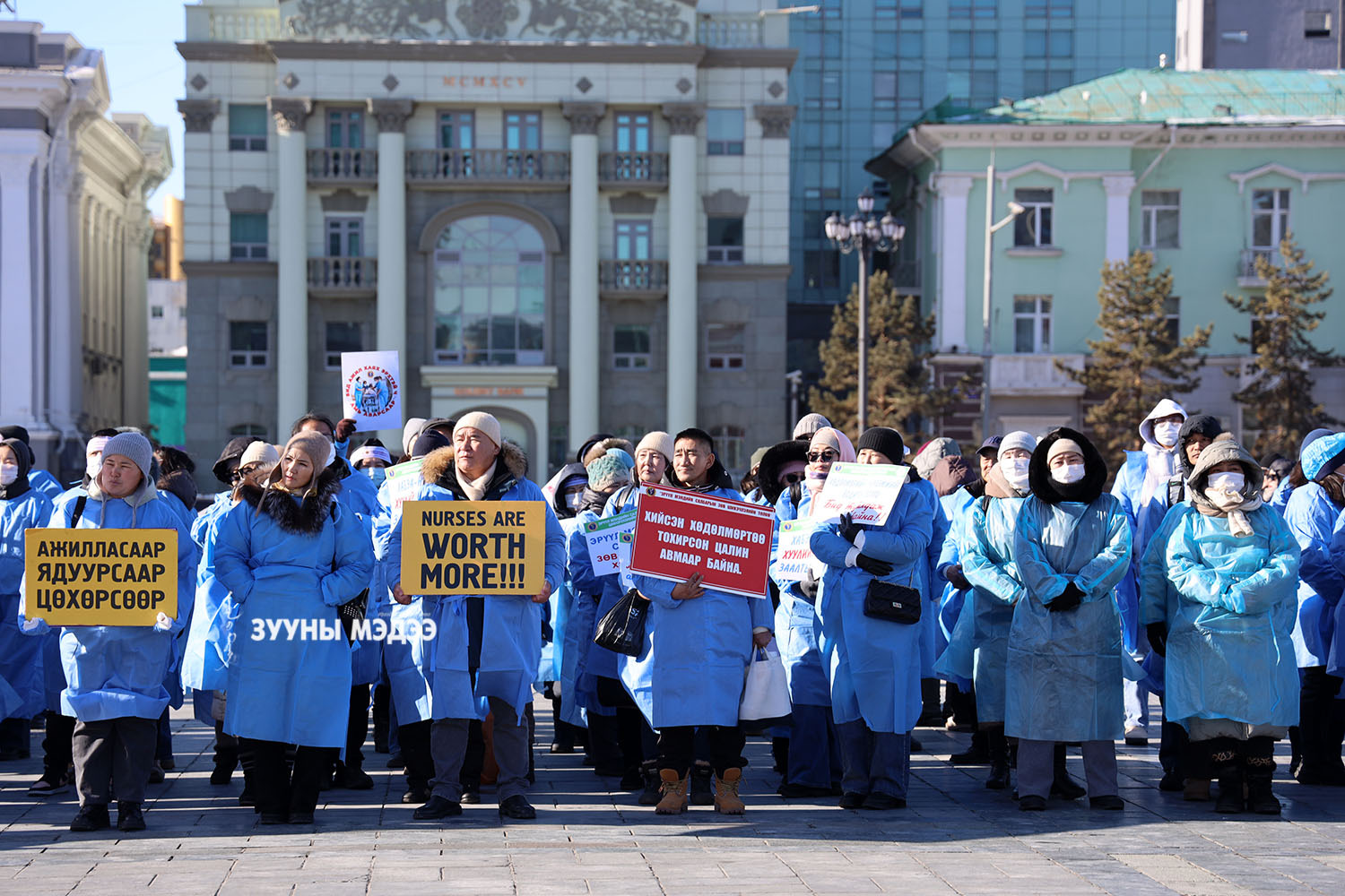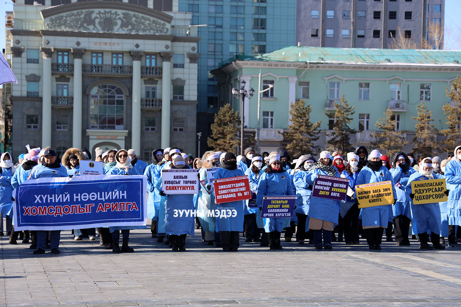 Эмч, ажилтнуудын "Дахин тэвчихгүй" эсэргүүцлийн жагсаал цуглаан өнөөдөр Сүхбаатарын талбайд боллоо. Энэ үеэр Монголын эрүүл мэндийн ажилтны үйлдвэрчний эвлэлийн холбооноос тохиролцоонд хүрч чадахгүй бол маргаашаас орон даяар албан ёсоор ажил хаяхаа мэдэгдсэн юм. Энэ талаар гэрэл зургийн сурвалжилгаас харна уу.