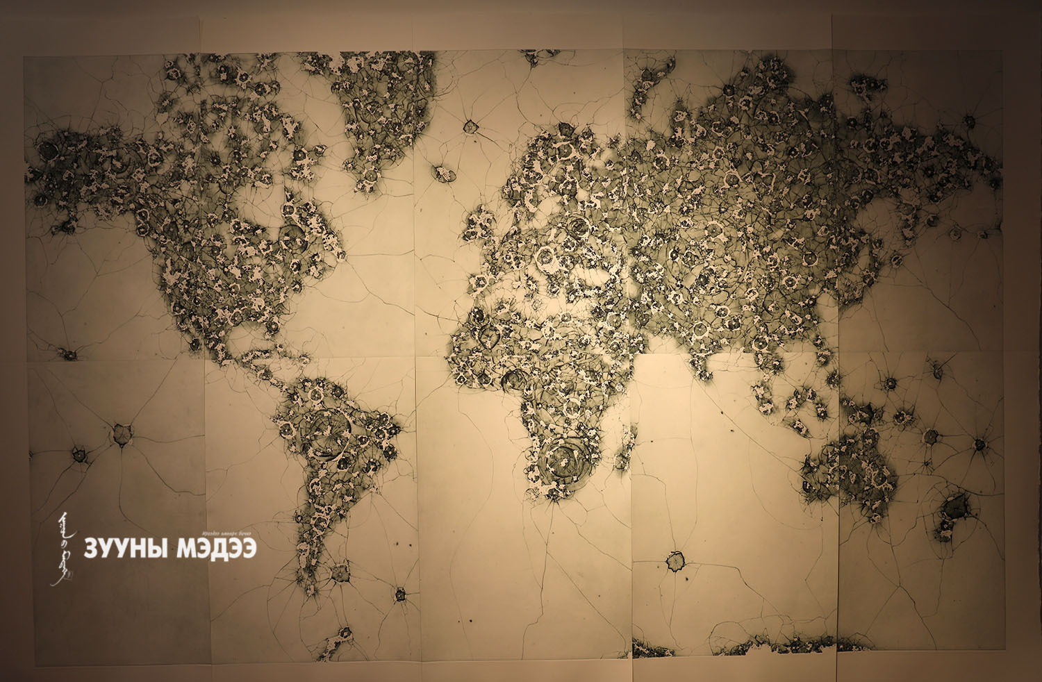 Шилээр хийсэн дэлхийн газар зүйн зураг.