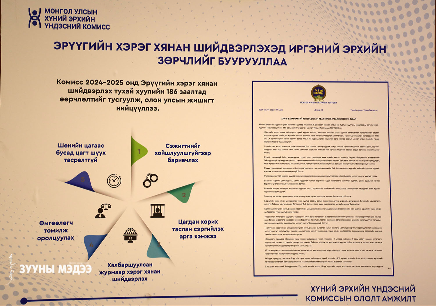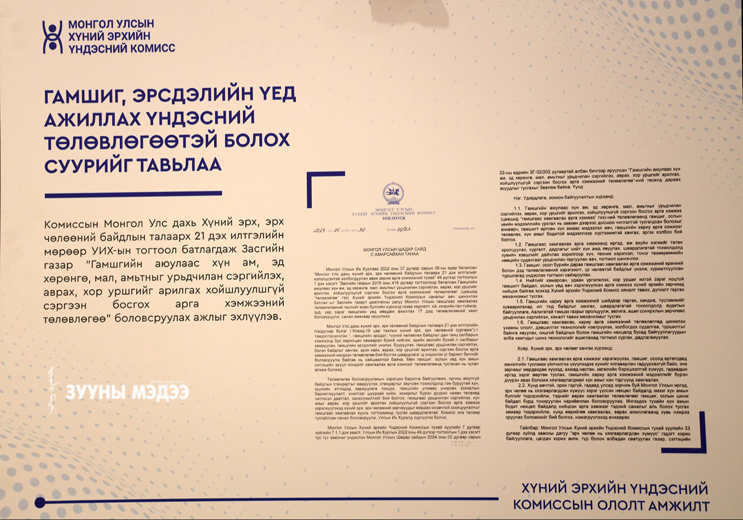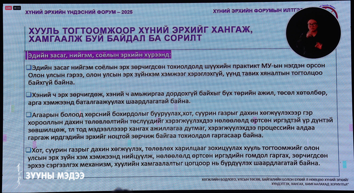 ХЭҮК байгуулагдсаны 25 жилийн ойг угтан Ерөнхийлөгчийн Тамгын газар, ХЭҮК, НҮБ хамтран "Хамтын эрх-хариуцлага" хүний эрхийн үндэсний форумыг зохион байгуулж байна. Энэ тухай гэрэл зургийн сурвалжилгаас харна уу.