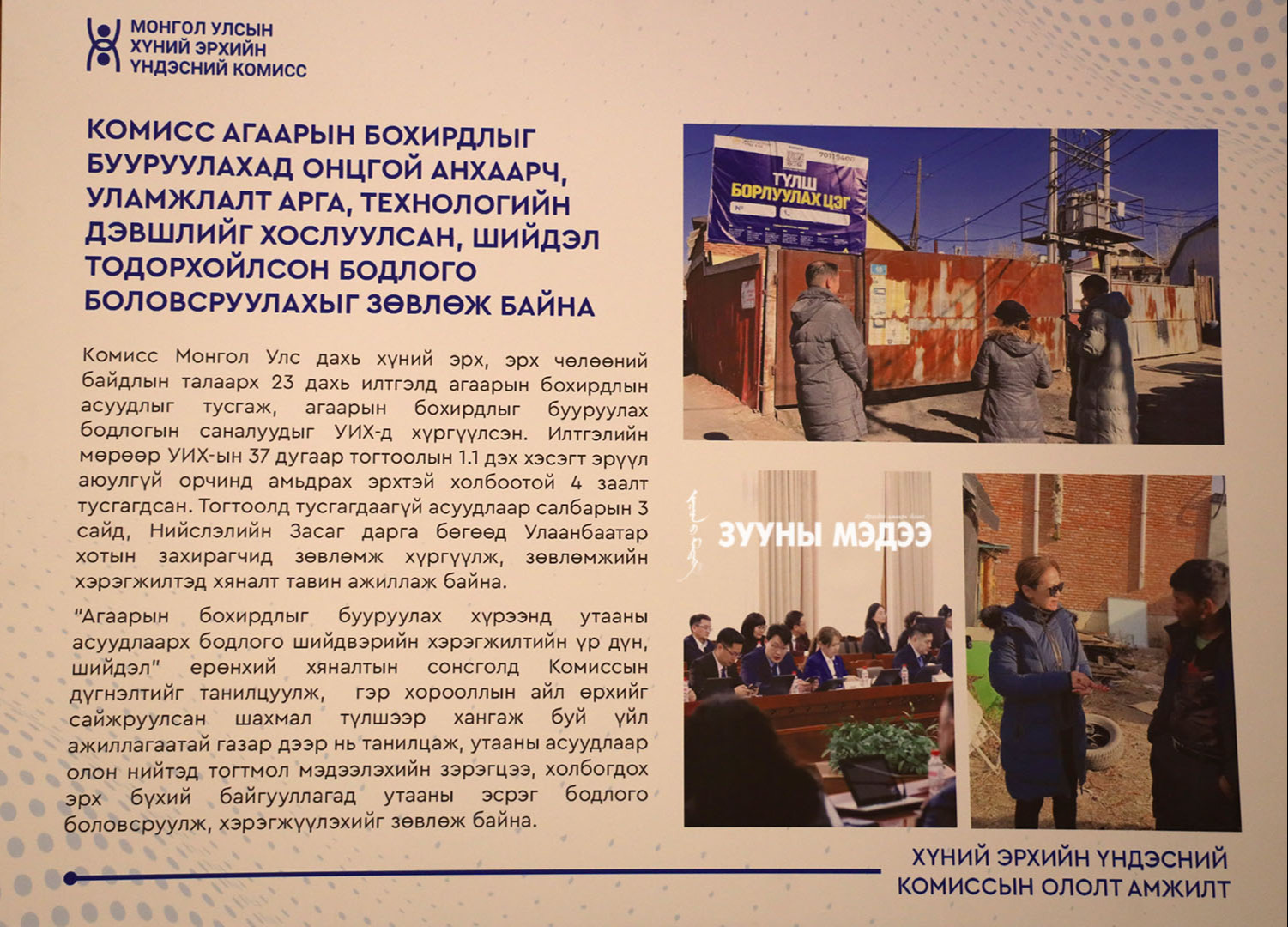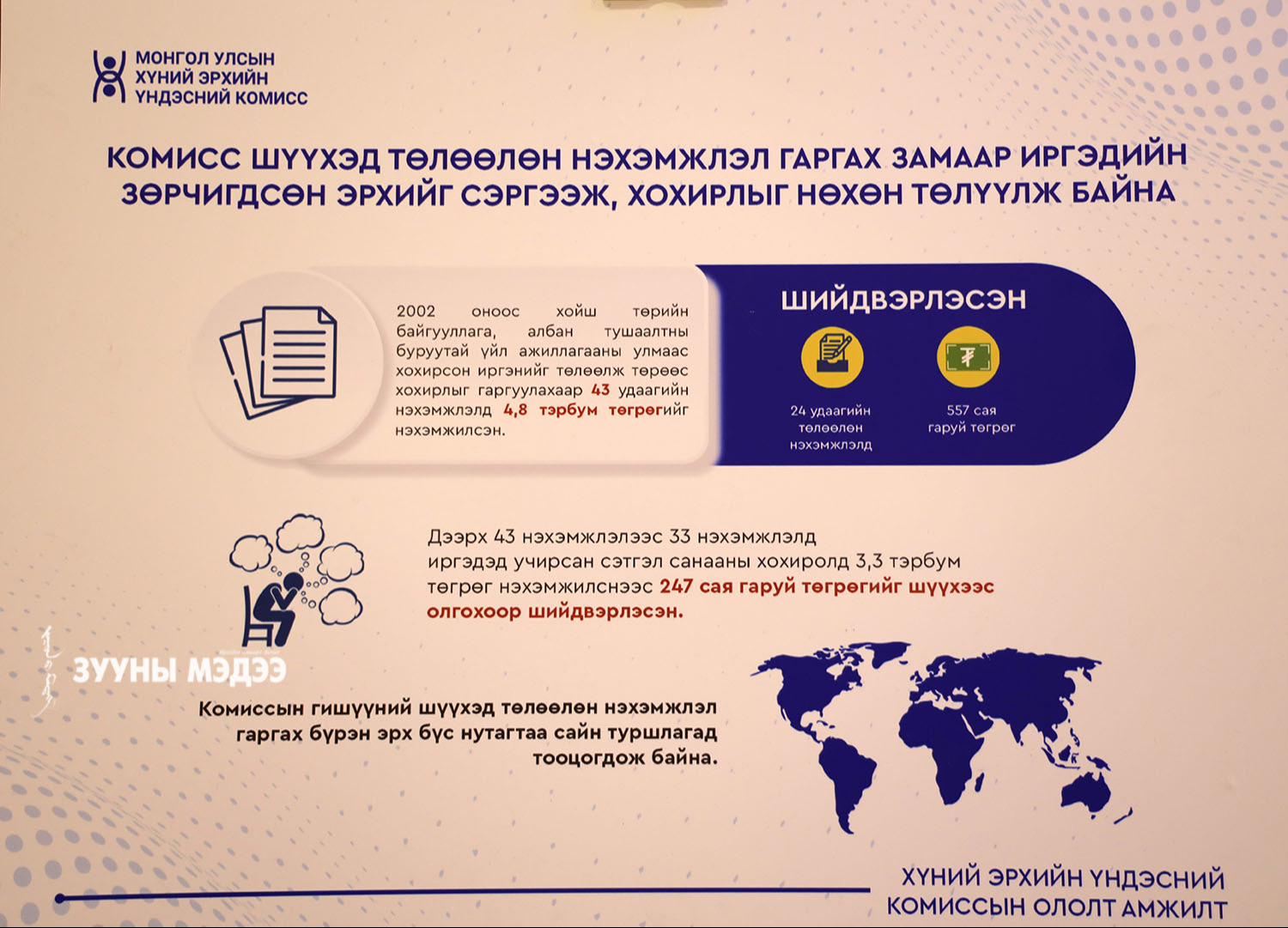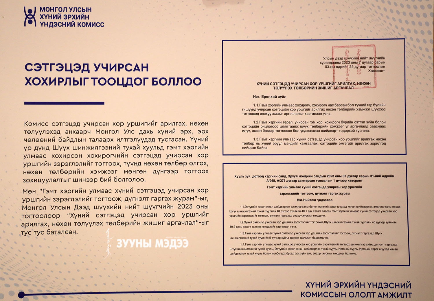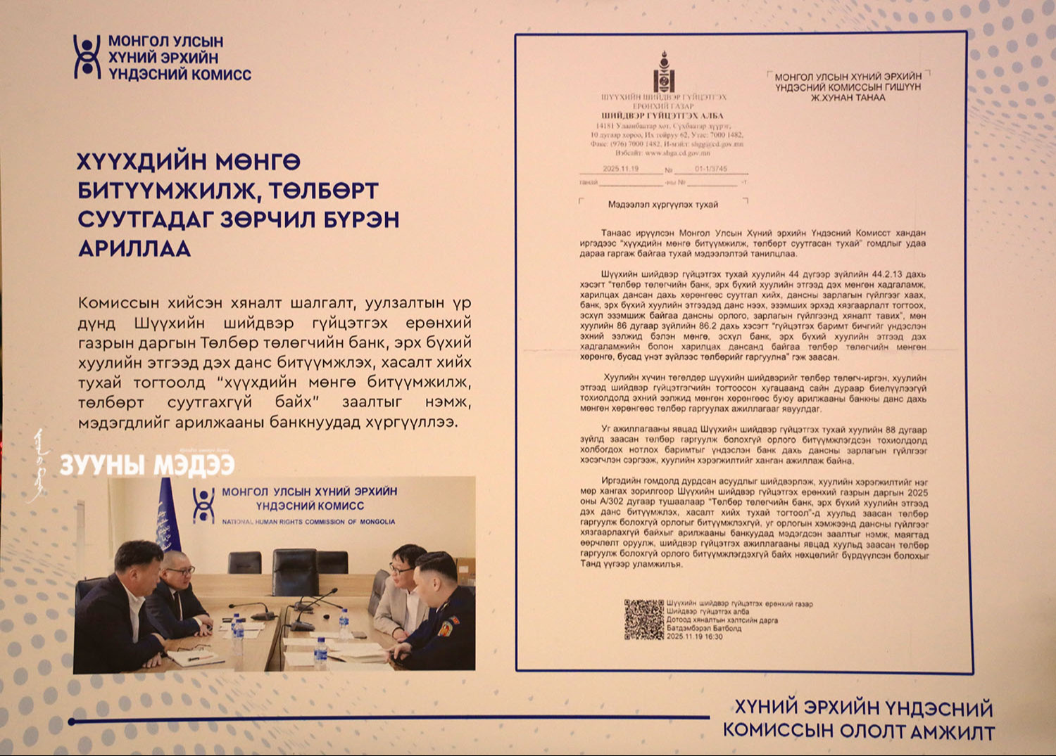 ХЭҮК байгуулагдсаны 25 жилийн ойг угтан Ерөнхийлөгчийн Тамгын газар, ХЭҮК, НҮБ хамтран "Хамтын эрх-хариуцлага" хүний эрхийн үндэсний форумыг зохион байгуулж байна. Энэ тухай гэрэл зургийн сурвалжилгаас харна уу.