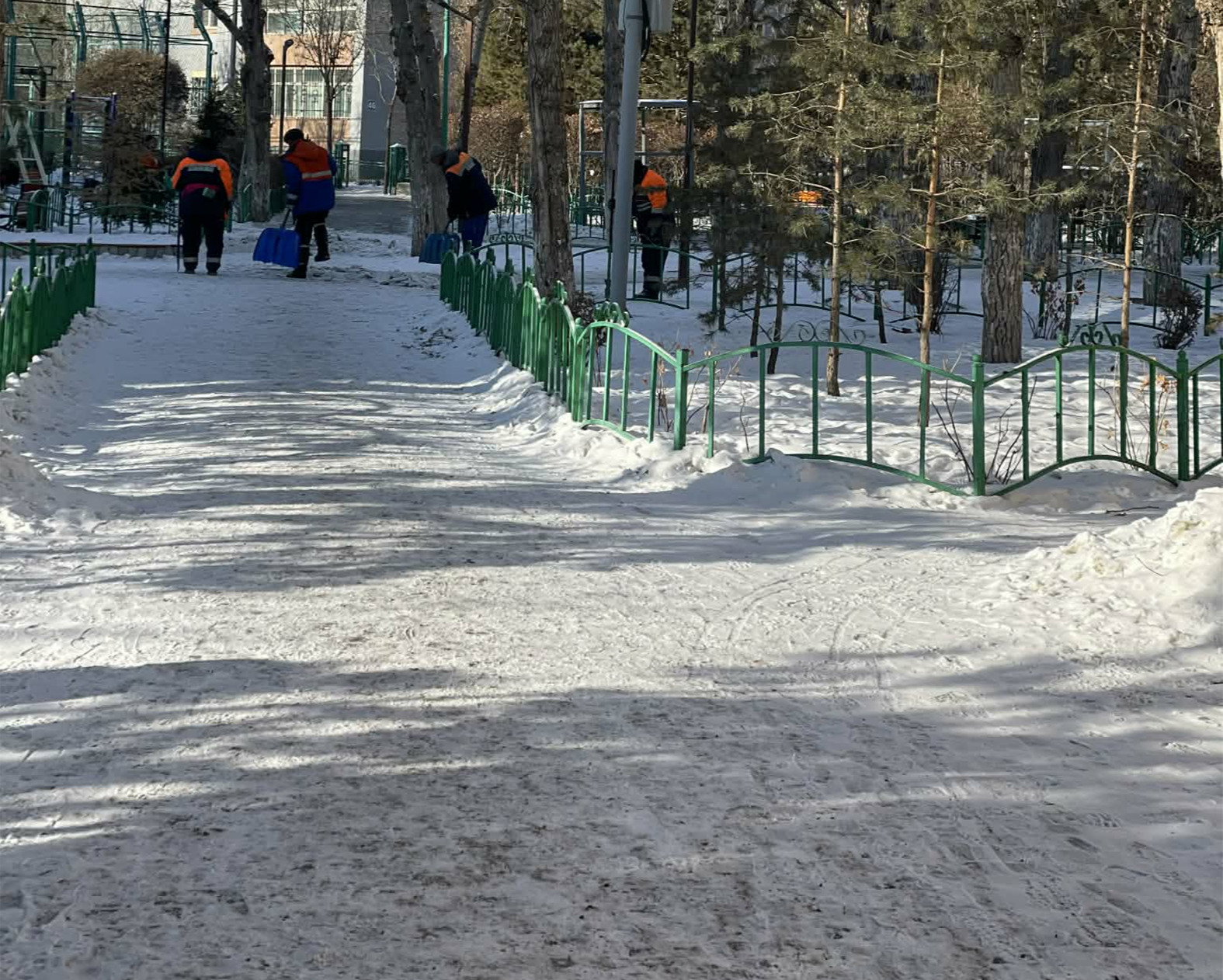 Угтаа Хог хаягдлын тухай хуулийн 9.4.12-т нутаг дэвсгэрийн аж ахуйн нэгж, байгууллагын хог хаягдал, цас, мөсийг хариуцан цэвэрлэх 50 метр хүртэлх нийтийн эдэлбэр газрын хилийн заагийг тогтоож, заасан нийтийн эдэлбэр газрын хог хаягдал, цас, мөсийг цэвэрлэх хэмээн заасан байдаг. Гэвч зарим аж ахуй нэгж, байгууллагууд нөгөөх цасаа үүднээсээ холдуулаад олон нийтийн зам талбай руу овоолох эсвэл цэвэрлэхгүй байх нь ч бас бий. Харин бусад нийтийн зам талбайг хот тохижилтын албаны ажилчид болон дүүргийн иргэдийн бүлэг цэвэрлэдэг. Тухайлбал, Чингэлтэй дүүргийн иргэдийн бүлгийн ажилтан М.Тооцоохүү “Биднийг хариуцсан дарга өглөө дагуулж гараад хариуцсан хэсгээ цэвэрлээд явдаг. Өнөөдөр дөрөвдүгээр хороо орчмын тоглоомын талбайг цэвэрлэж байна. Гэр хорооллын гудамж, жалга гээд бүгдийг л цэвэрлэдэг” гэж байв.
