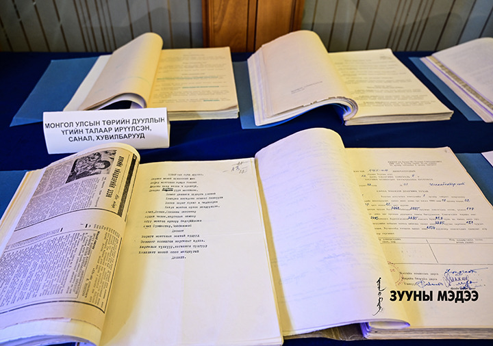 Үндсэн хуулийг хэлэлцэн батлах үеийн архивын түүхэн баримтуудыг эх хувиар нь дэлгэлээ.