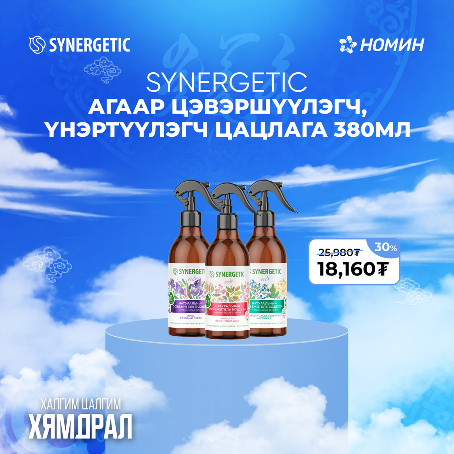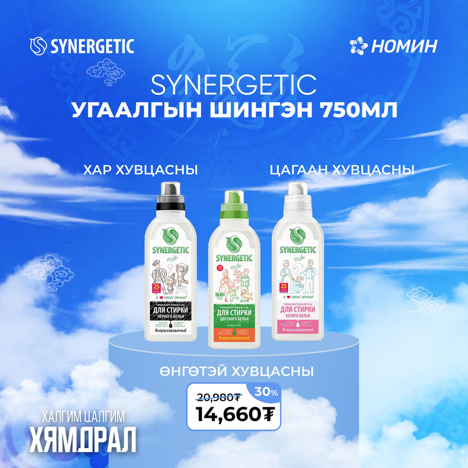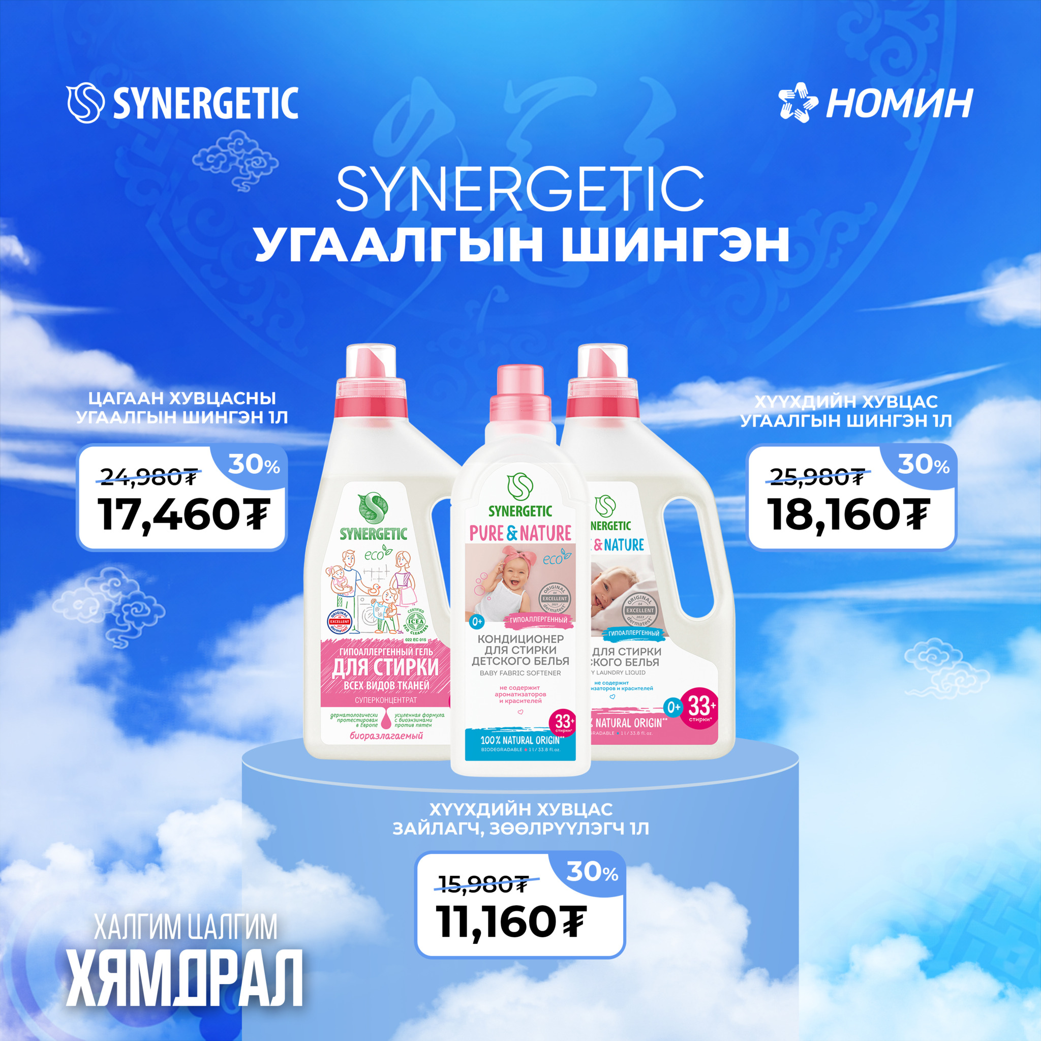 Synergetic брэнд нь Synergetic-ийн 95 хувиас дээш байгалийн орц найрлагатай, харшил үүсгэгч химийн бодис агуулаагүй, эко гэр ахуйн цэвэрлэгээ, гоо сайхан, хүүхдийн болон угаалгын 110 гаруй нэр төрлийн бүтээгдэхүүнтэй.