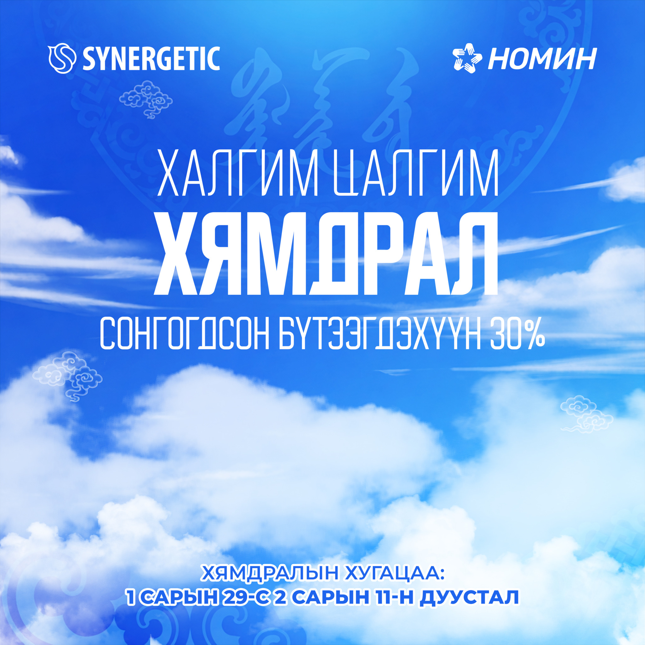 Цагаан сарын баярыг тохиолдуулан Халгим Цалгим хямдрал Номингийн бүх салбаруудад сонгогдсон бүтээгдэхүүнүүд 2 сарын 11 хүртэл 30 хувь хүртэл хямдарна.