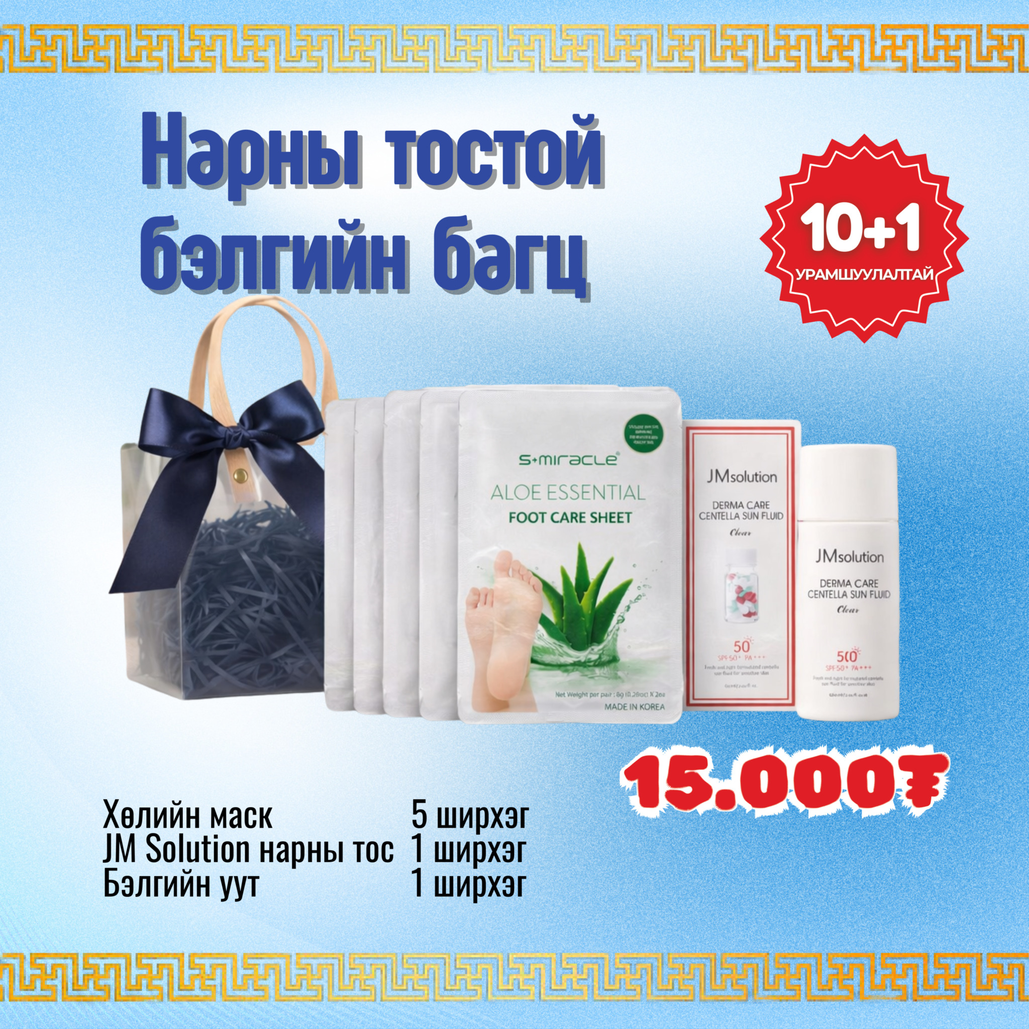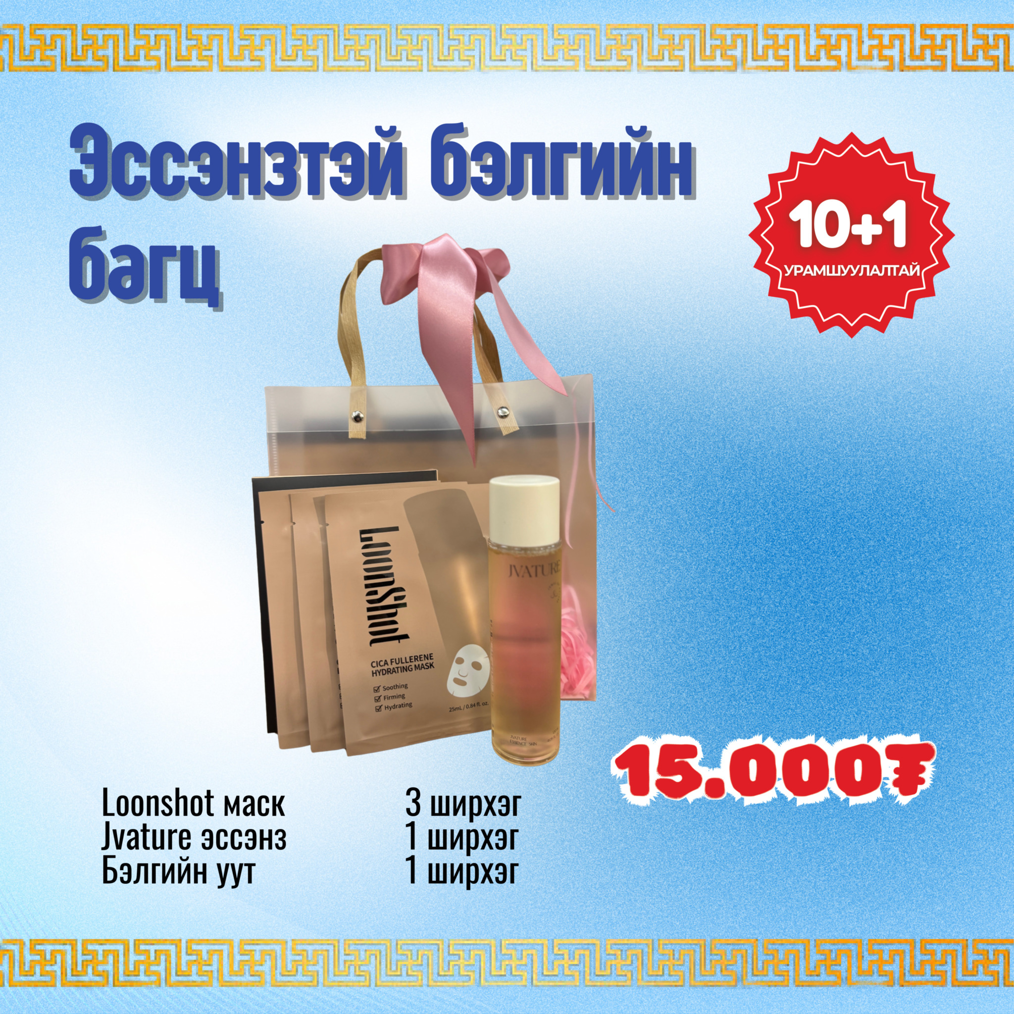 Цагаан сараар хайртай дотны хүмүүстээ барих чанартай, үнэ боломжийн бэлгийг хэрэглэгчдэд санал болгох зорилгоор бэлгийн багцуудыг худалдаанд гаргалаа. Эдгээр багцууд нь бүх насны хүмүүст өгөхөд тохиромжтой, бэлгийн зориулалтын баглаа боодолтой бөгөөд дараах үнээр худалдаалагдаж байна.