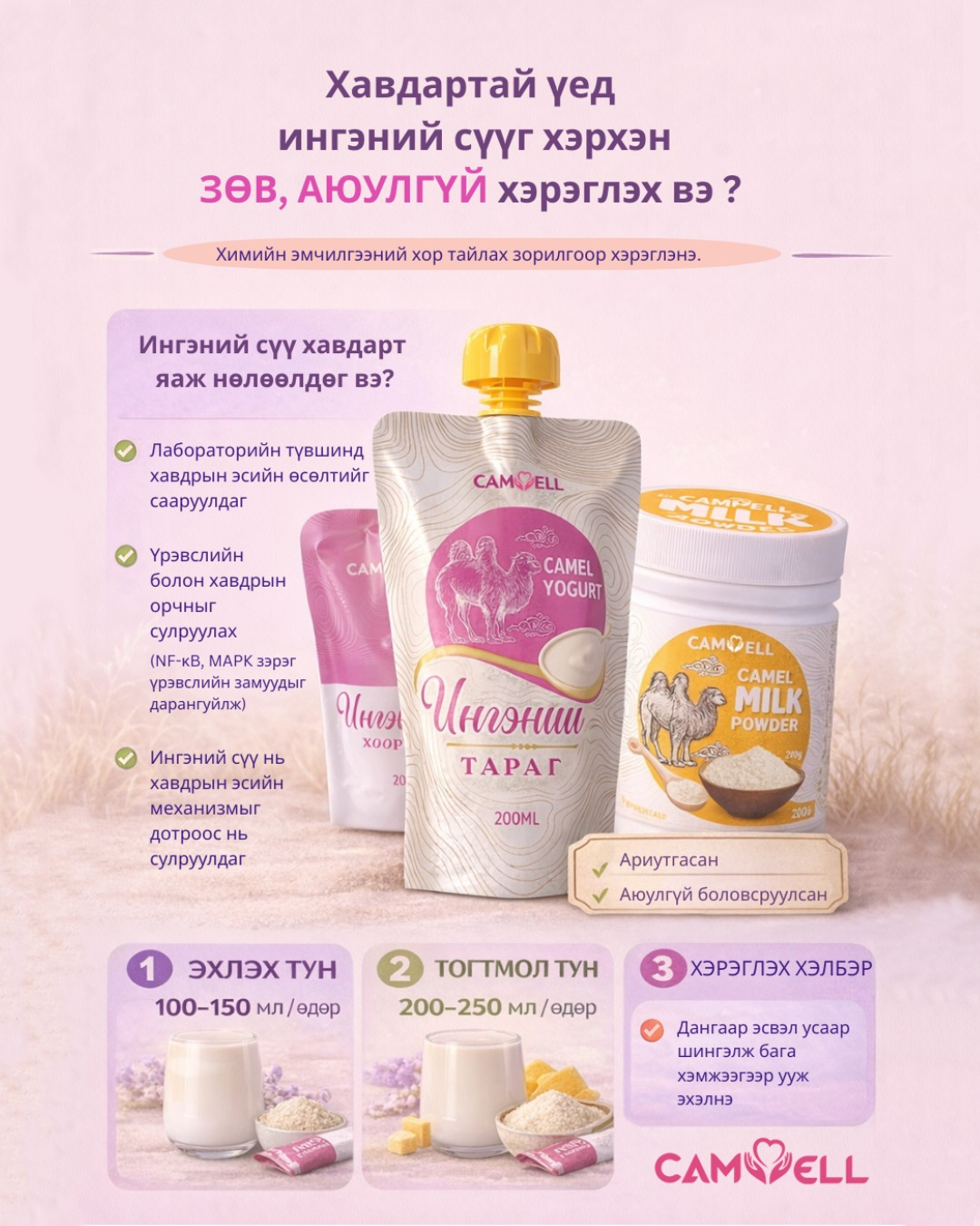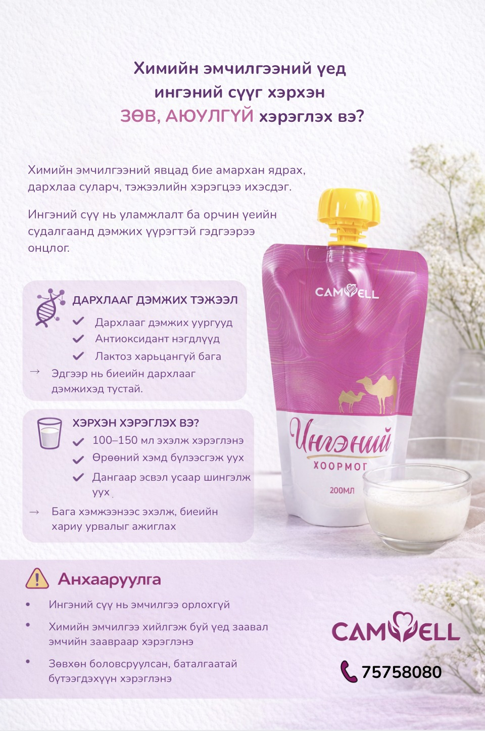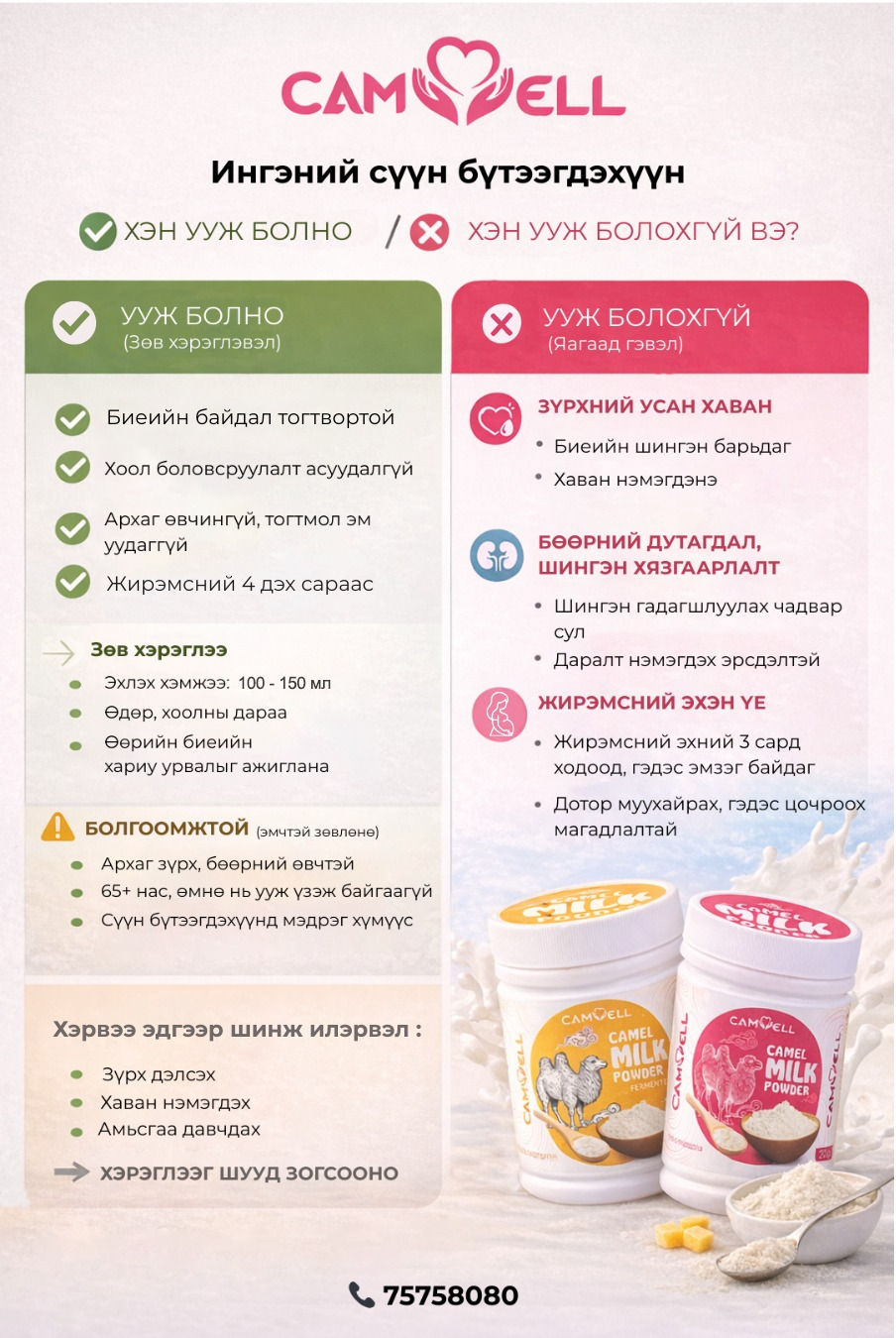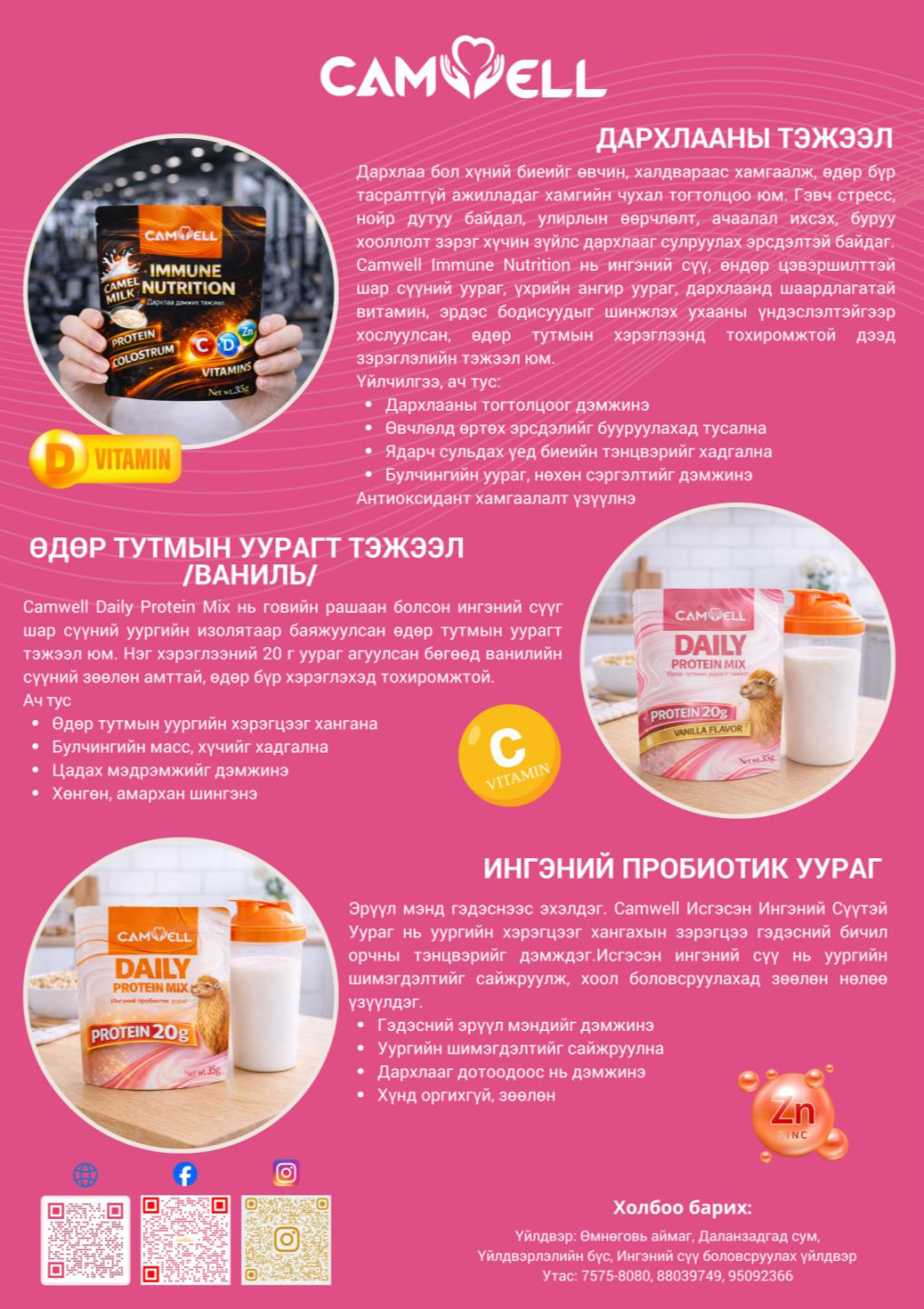 Өмнөговь аймагт таван жилийн өмнө нээгдсэн ингэний ферм нь нийт 160 ингэтэй. Өнөөдрийн байдлаар 70 ингэ сааж байна. Нэг ингэнээс 2.5 литр сүү буюу бэлчээрийн тэмээнээс 2-3 дахин их сүү авч байгаа юм байна. Тараг, ундаа, хуурай сүү зэрэг нийт найман төрлийн бүтээгдэхүүн үйлдвэрлэж, дотоодын зах зээлд нийлүүлдэг. Тус бүтээгдэхүүнүүд нь “Түмэн тэмээний баяр”-ын хамгийн их эрэлттэй бүтээгдэхүүнүүд байлаа.