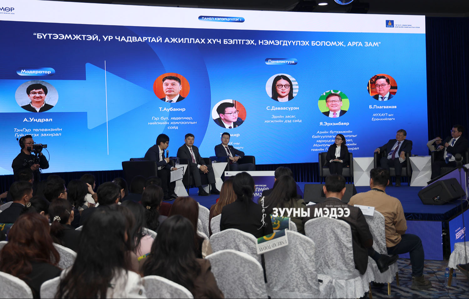 “Хувьсан өөрчлөгдөх хөдөлмөр–2026” үндэсний форум болж байна. Форум нь хөдөлмөрийн зах зээлийн өнөөгийн нөхцөл байдал, цаашдын чиг хандлага, тулгамдаж буй асуудлуудыг олон талын оролцоотойгоор хэлэлцэж, "Хөдөлмөр эрхлэлтийг дэмжих жил"-йийн хүрээнд хэрэгжүүлэх хамтын ажиллагааны талаар санал солилцох зорилготой юм. Энэ талаар гэрэл зургийн сурвалжилгаас харна уу.