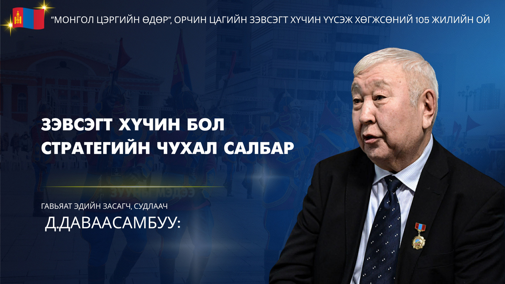 -Тусгаар тогтносон Монгол Улс зэвсэгт хүчинтэй байх нь зөвхөн улс орны аюулгүй байдлыг хамгаалах хэрэгсэл төдийгүй, үндэстний оршин тогтнол, нэр төрийн баталгаа болдог. Түүхийн урт хугацаанд монголчууд тусгаар тогтнолоо алдах, сэргээх олон сорилтыг даван туулсан билээ. Иймээс Зэвсэгт хүчин нь эх орноо гадаад, дотоодын аливаа заналхийллээс хамгаалах төдийгүй, ард иргэдийн амар тайван амьдрах нөхцөлийг бүрдүүлдэг чухал институт юм. Мөн Зэвсэгт хүчин нь эх оронч үзэл, сахилга бат, эв нэгдлийг төлөвшүүлэх сургууль болдог. Залуу үе цэрэгт алба хаахдаа эх орныхоо үнэ цэнийг илүү гүн ойлгож, хариуцлагатай иргэн болж төлөвшдөг. Түүнчлэн энхийг сахиулах ажиллагаанд оролцсоноор Монгол Улсын нэр хүнд олон улсад өсдөг. Иймд зэвсэгт хүчин бол тусгаар тогтнолын бат бэх тулгуур, ард түмний итгэл найдварын илэрхийлэл мөн.