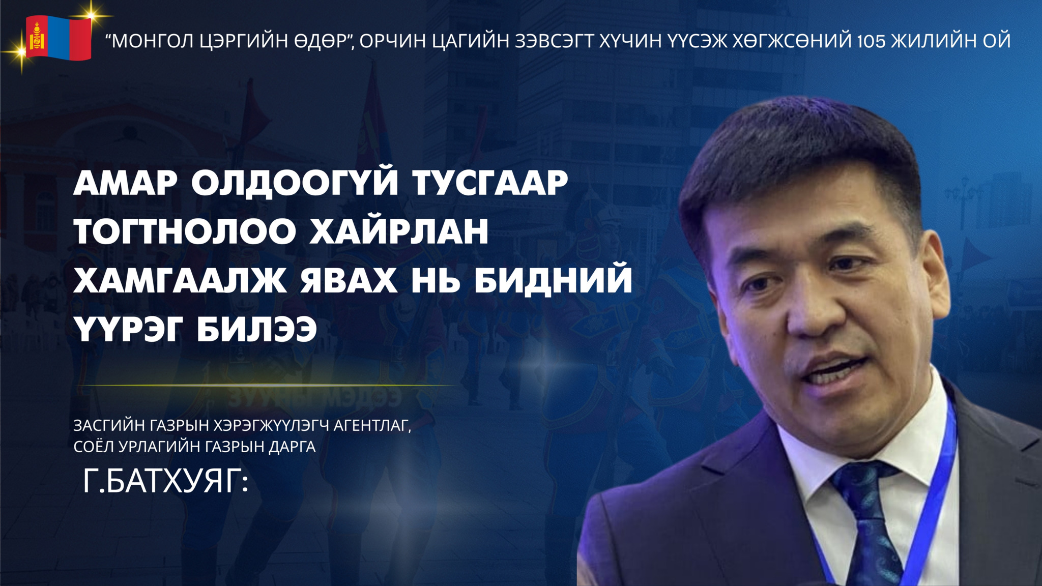 Засгийн газрын хэрэгжүүлэгч агентлаг, Соёл урлагийн газрын дарга Г.Батхуяг: Амар олдоогүй тусгаар тогтнолоо хайрлан хамгаалж явах нь бидний үүрэг билээ