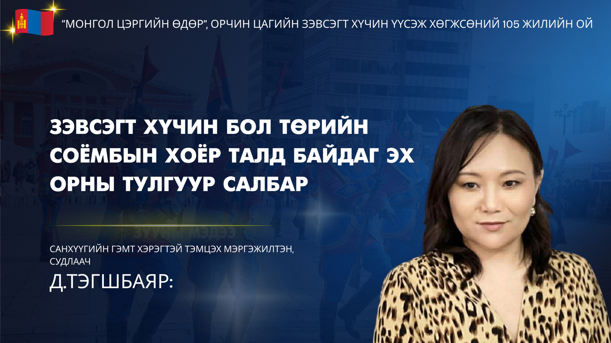 Санхүүгийн гэмт хэрэгтэй тэмцэх мэргэжилтэн, судлаач Д.Тэгшбаяр: Зэвсэгт хүчин бол Төрийн соёмбын хоёр талд байдаг эх орны тулгуур салбар