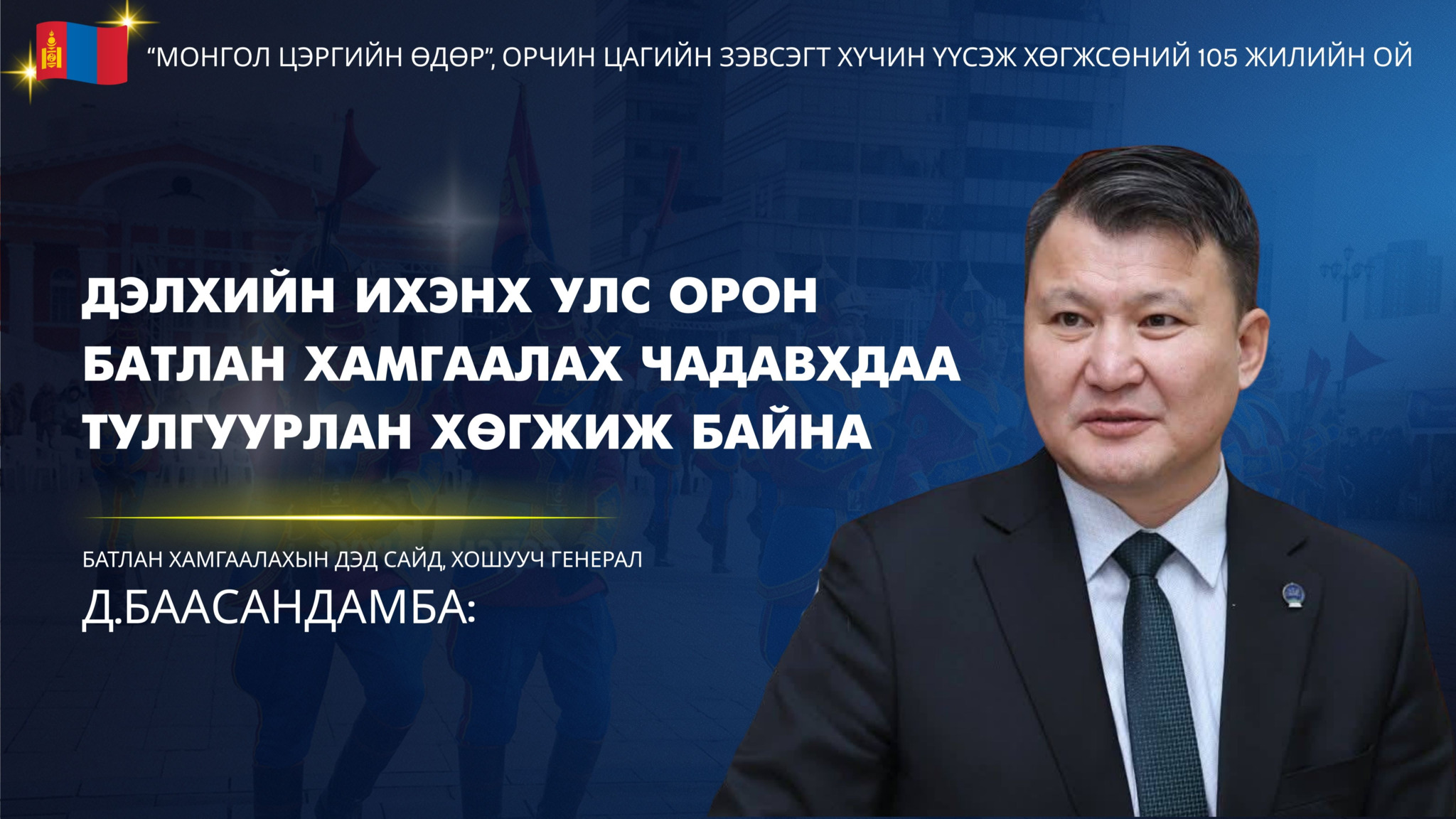 Батлан хамгаалахын дэд сайд, хошууч генерал Д.Баасандамба: Дэлхийн ихэнх улс орон батлан хамгаалах чадавхдаа тулгуурлан хөгжиж байна