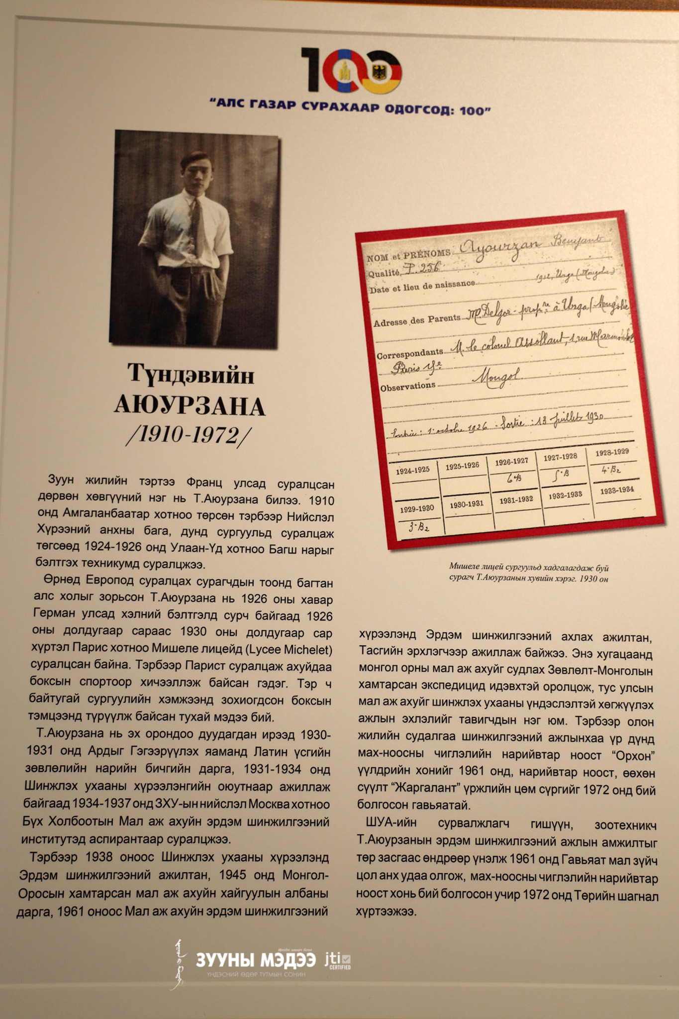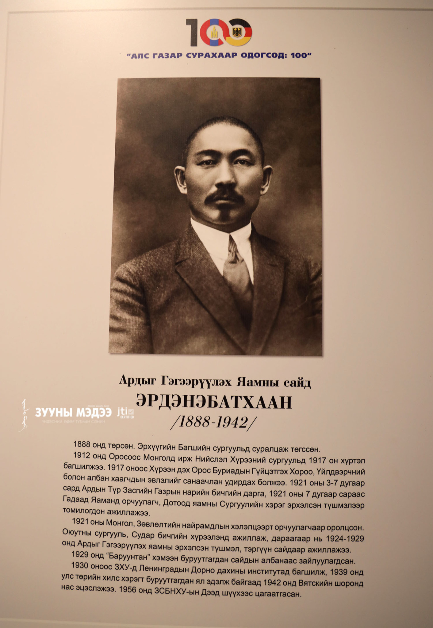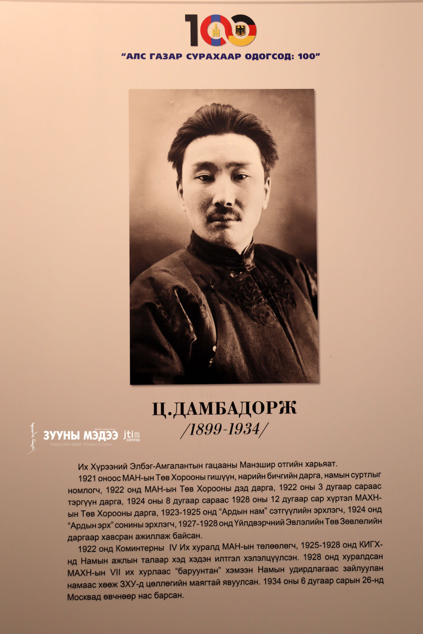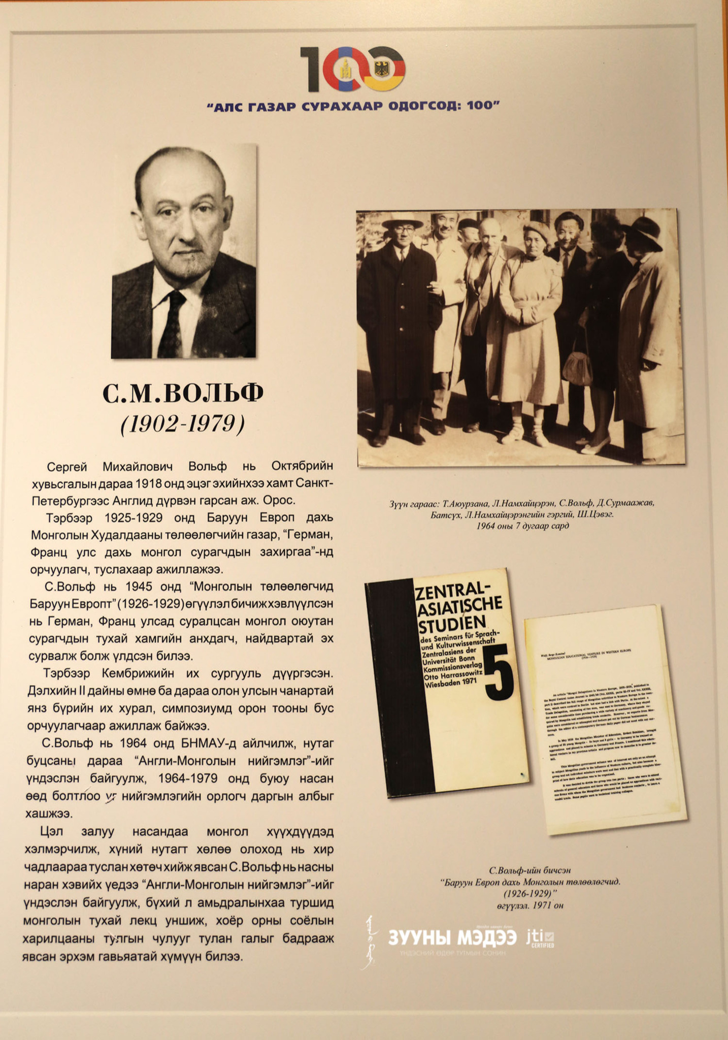 Монгол сурагч, оюутнууд Өрнөд Европт суралцаж эхэлсний 100 жилийн ой энэ онд тохиож байна. Цагаатгах ажлыг удирдан зохион байгуулах улсын комиссоос санаачлан төрийн бусад байгууллага, судлаачидтай хамтран "Алс газар сурахаар одогсод:100" үзэсгэлэнг Монголын үндэсний музейд зохион байгууллаа. Энэ тухай гэрэл зургийн сурвалжилгаас харна уу.