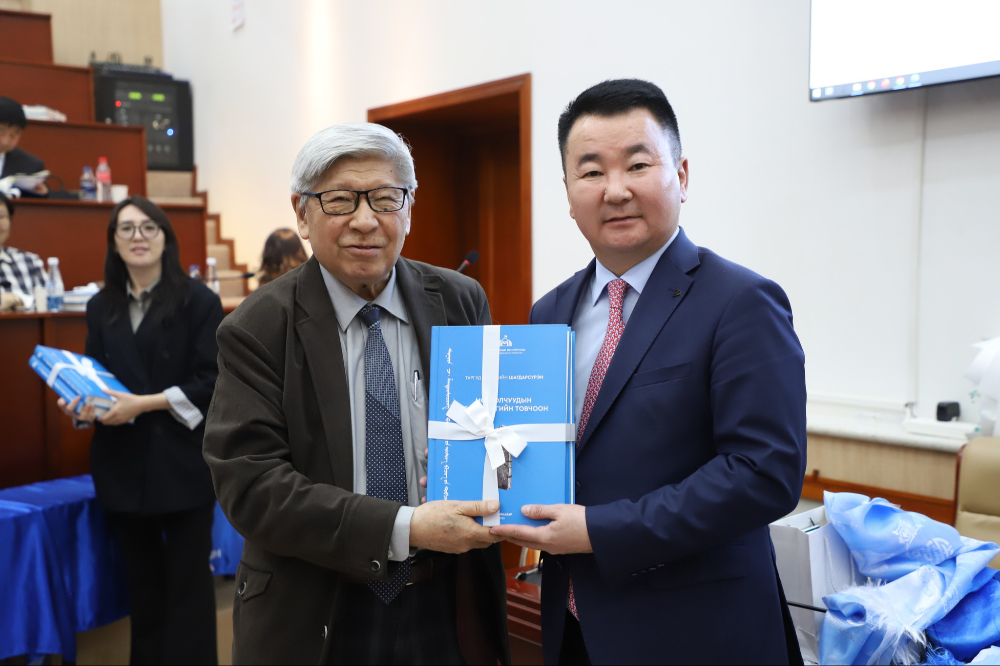 Монгол Улсын Төрийн шагналт, Шинжлэх ухааны гавьяат зүтгэлтэн, Хүмүүнлэгийн шинжлэх ухааны доктор, профессор Цэвэлийн Шагдарсүрэнгийн "Монголчуудын үсэг бичгийн товчоон", "Монголчуудын утга соёлын товчоон" номын нээлт 2026 оны дөрөвдүгээр сарын 20-ны өдөр МУИС-ийн Эрдмийн танхимд боллоо.