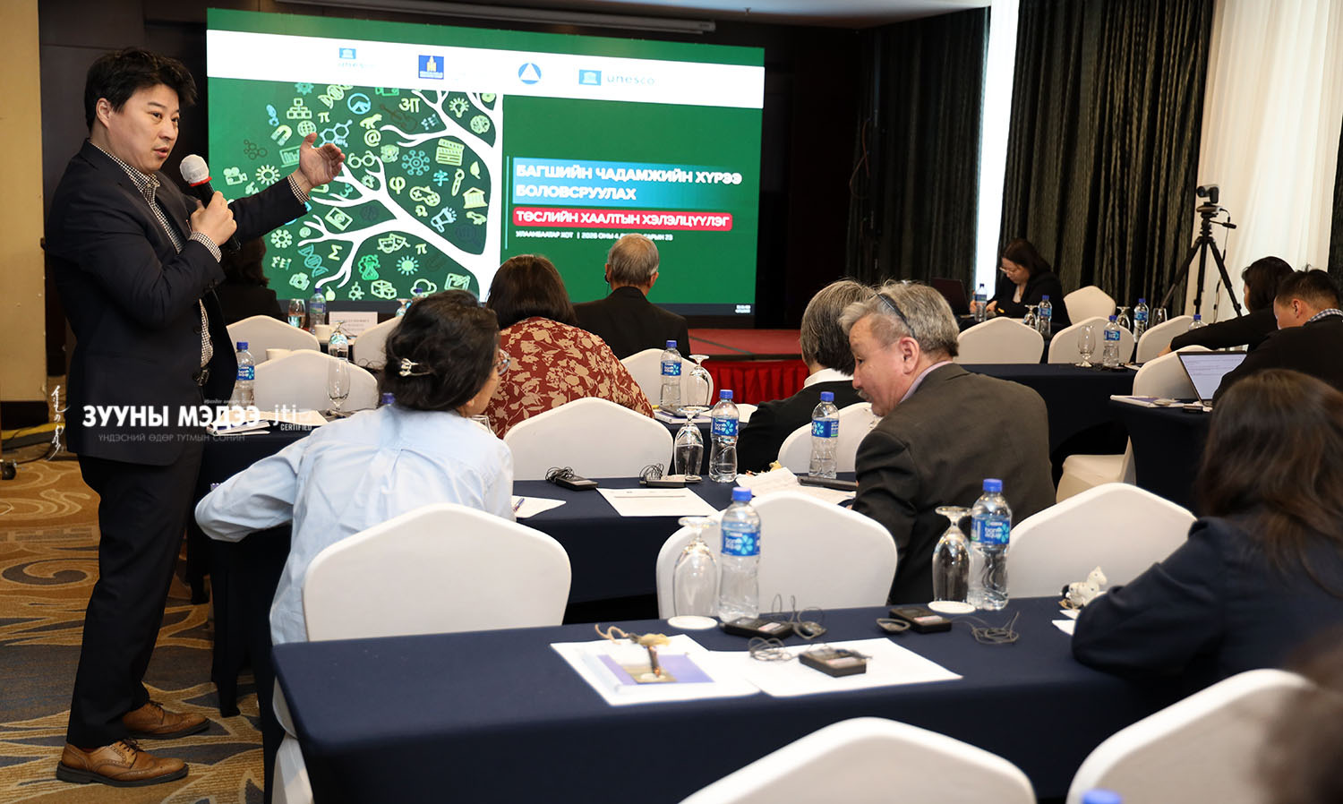 Багшийн чадамжийн хүрээ боловсруулах төслийн хаалтын хэлэлцүүлэг өнөөдөр боллоо. Хэлэлцүүлгээр үндэсний нөхцөл байдлын судалгаа болон үндэсний хэлэлцүүлгийн гол үр дүн. Багшийн чадамжийн хүрээ: ай, дэд ай, түвшин. Багшийн чадамжийн хүрээний төслийн эцсийн хувилбарыг батлах юм. Энэ тухай гэрэл зургийн сурвалжилгаас харна уу.