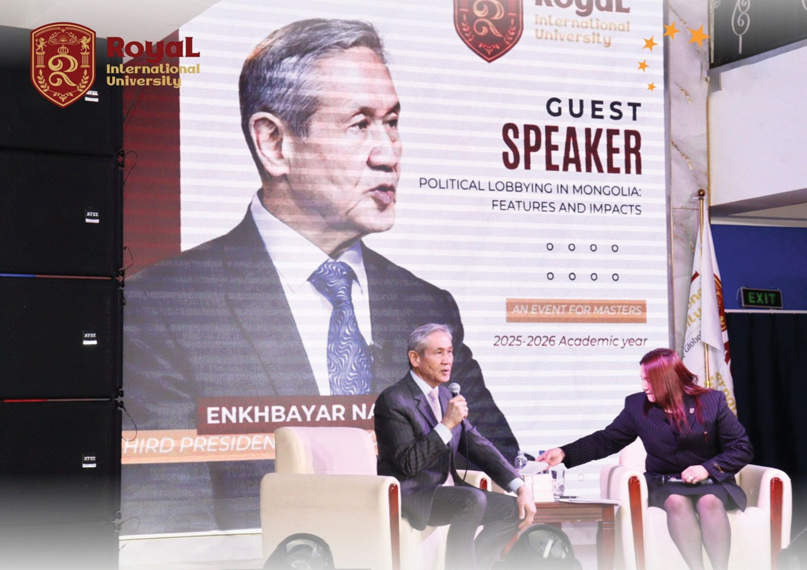 “Рояал” олон улсын их сургуулийн 2025-2026 оны хичээлийн жилд магистрантаар суралцаж буй оюутнуудад зориулж, “Монголын улс төр дэх лоббизм” сэдвийн хүрээнд Монгол Улсын гурав дахь Ерөнхийлөгч Н.Энхбаяр лекц уншиж, нээлттэй ярилцлага өрнүүлснийг бүрэн эхээр нь хүргэж байна.