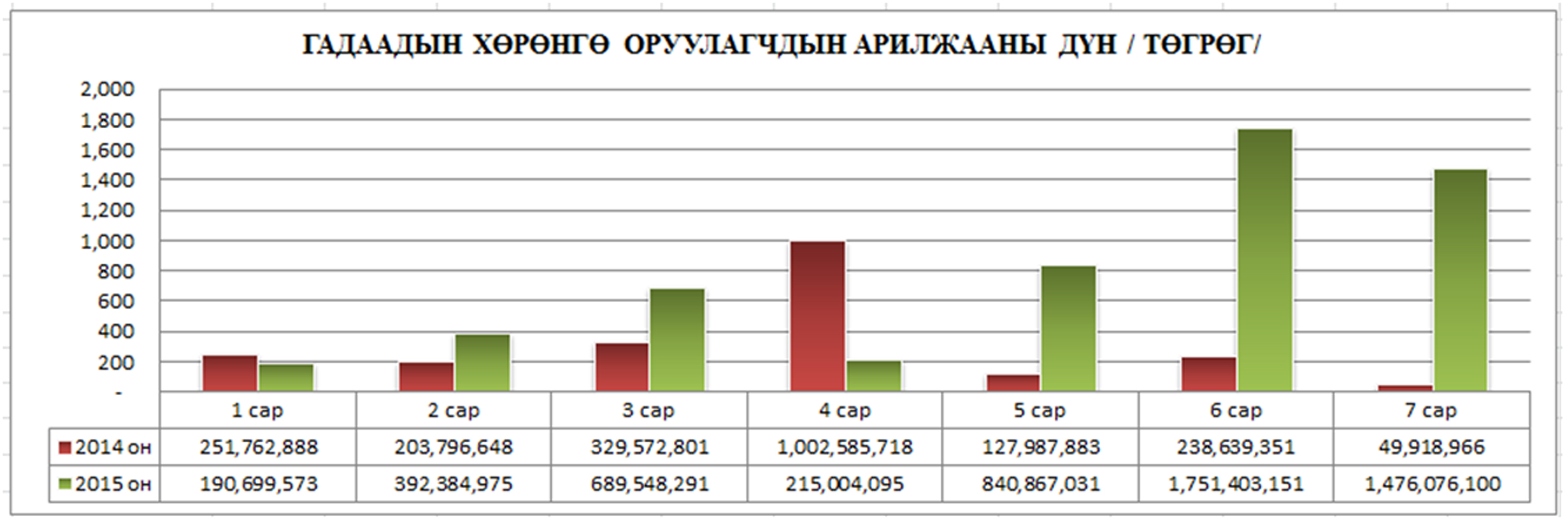 Монголын хөрөнгийн бирж 5041 дэх арилжаагаараа 354.4 тэрбум төгрөгийн гүйлгээ хийж дээд амжилт тогтоосон. 2012 оноос буурч ирсэн үнэт цаасны зах зээлийн арилжаанд гадаадын хөрөнгө оруулагчдын оролцооны идэвх нэмэгдэж энэ оны эхний долоон сарын байдлаар өмнөх оны мөн үетэй харьцуулахад 2.5 дахин өссөн байна. Энэ хугацаанд 5.5 тэрбум төгрөгийн арилжаа хийжээ. Мөн дотоодын хөрөнгө оруулагчдын арилжааны идэвх өмнөх оны мөн үетэй харьцуулахад 28 дахин өсч, нийт 323 тэрбум төгрөгт хүрсэн тухай цахим хуудастаа тэмдэглэсэн байна.
