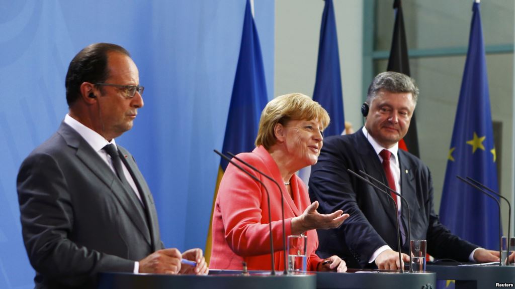 Украины Ерөнхийлөгч Петр Порошенко Берлинд Францын төрийн тэргүүн Франсуа Олланд, Германы Канцлерь Ангела Меркельтэй уулзсан байна. Тэд уулзалтын үеэр Минскийн энхийн хэлэлцээрийн биелэлтийн талаар санал бодлоо солилцжээ. Уулзалтын дараа болсон хэвлэлийн хурлын үеэр А.Меркель Берлиний уулзалтын явцад Минскийн хэлэлцээрийн биелэлтийг ярилцаж, цаашид хэрэгжүүлэхэд анхаарч ажиллахаа мэдэгдсэн байна. 2014 дөрөвдүгээр сард эхэлсэн Украины зүүн хэсгийн мөргөлдөөн эхэлснээс хойш 6400-гаад хүн амь үрэгдээд байгаа.