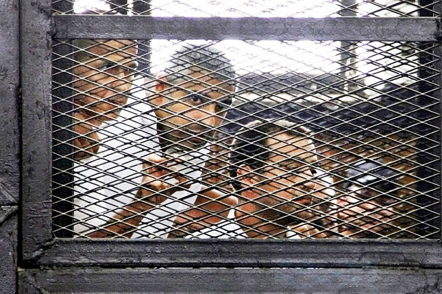 Египетийн шүүх Катарын “Аль-Жазира” телевизийн гурван сэтгүүлчийг шийтгэж хорих ял оноолоо. Тэднийг зөвшөөрөлгүй ажилласан, төр улсад хохирол учруулсан баримт материал тараасан хэмээн буруутгажээ. Шүүхийн сандалд Канадын иргэншил аваад удаагүй байгаа египет гаралтай Мохамед Фахми, Бахер Мохамед нар суусан байна. Гурав дахь шүүгдэгч, Австралийн иргэн Питер Грест хоёрдугаар сард Египетийн газар нутгаас хөөгдсөн бөгөөд түүнд эчнээ ял оноосон аж.