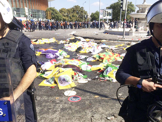 Туркийн Ерөнхий сайд Ахмет Давутоглу Анкарад болсон халдлагад “Исламын улс” бүлгийг сэжиглэж байгаагаа мэдэгдсэн юм. Нийслэл Анкара хотын төмөр замын буудлын орчимд аравдугаар сарын 10-нд хоёр дэлбэрэлт болсон. Туркийн эрх баригчид болон курд үндэстний хоорондох цуст мөргөлдөөнийг эцэс болгохыг уриалсан хүмүүс уриа лоозон барьж жагсах үеэр бөмбөг дэлбэрсэн юм. 14 мянга орчим хүн жагсаалд оролцож байсан бөгөөд 100 орчим хүн халдлагын золиос болж амиа алджээ. Эхэндээ Туркт хориглосон Курдистаны ажилчдын намын босогчдыг халдлагад сэжиглэж байсан ч тус бүлэг “Бид энд хамаагүй” хэмээн мэдэгдсэн байна. Туркийн цэргүүд Сири дэх терроризмын эсрэг ажиллагаанд оролцож байгаа нь “Исламын улс” бүлгийн дургүйг хүргэж, Туркт халдлага зохион байгуулахад хүргэсэн хэмээн үзэж байгаа аж.