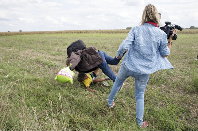 Сирийн харъяат Осама Абдул Мохсен хүүгээ тэврэн Унгарын цагдаа нараас зугтааж явахад нь дэгээдэн унагаж дэлхийд “танигдсан” зураглаач, сурвалжлагч Петра Ласло сири эрийг мэдүүлгээ өөрчилсөн, мөн Facebook сүлжээгээр үзэн ядалт, заналхийлэл хүлээн авч сэтгэл санааны гүн дарамтад орсон хэмээн шүүхэд ханджээ. Унгар бүсгүй эхлээд араасаа цохиулсан, тэгээд хариу үйлдэл хийхдээ хүн дэгээдсэн хэмээн өчиж байна. “Би өөрийгөө л хамгаалсан. Абдул Мохсен эхлээд цагдаад цохиулсан гэж мэдүүлсэн ч дараа нь мэдүүлгээ өөрчилж миний эсрэг зүйл ярьсан” хэмээн өгүүлэв. Европ руу орохоор амь тэмцсэн цагаачид Унгарын цагдаа нараас зугтаан гүйж байхад зураглаач бүсгүй хүүгээ тэвэрсэн эрийг дэгээдэн унагаж буй бичлэг есдүгээр сарын 8-нд телевизээр цацагдсан даруйд дэлхий даяараа зэвүүцэн шуугилдаж, бүсгүй ч тэр даруйдаа Унгарын N1TV телевизээс хөөгдсөн юм.
