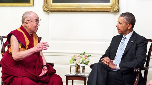 АНУ-ын Ерөнхийлөгч Барак Обама Түвдийн оюун санааны лидер Далай лам Данзанжамцыг Цагаан ордонд хүлээж авчээ.