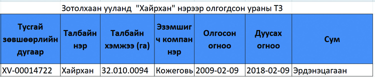 Сүхбаатар аймгийн Эрдэнэцагаан сумынхны хэдэн үеэрээ тахиж шүтэж ирсэн тахилгат Зотол хан хайрхан 2009 онд уран лиценз нэрээр Францын “Арева-Кожеговь” компанийн мэдэлд орсон. Лицензийн хугацаа өнгөрсөн сарын 9-нд дуусах ёстой ч үргэлжлүүлэн сунгасан, цуцласан эсэх нь тодорхойгүй байна. Уулын оройн хэсэг буюу ердөө 3874 га газрыг үлдээснийг эс тооцвол бэлийг нь тойруулан 57385 га талбай буюу бараг бүхэлд нь 14722 тоот лицензийг олгочихсон байдаг. Өнгөрсөн хугацаанд энд тэнд нь өрөм тавих, машин зам гаргах зэргээр байгаль орчныг доройтуулсан жишээ цөөнгүй. Он гарсаар энэ талаар ярилцахаар удаа дараа хүсэлтээ илэрхийлсэн нутгийн иргэд, иргэний нийгмийн байгууллагын төлөөлөгчдийг УИХ-ын гишүүн Ч.Улаан хүлээж аваагүй байна. Гол нь тэд “Зотол хан уул ураны лицензээс чөлөөлөгдсөн үү. Хэрэв чөлөөлөгдөөгүй бол чөлөөлүүлэх ёстой” гэдгийг л эрхэм гишүүнээр дамжуулан төр, засагт дуулгахыг хүсчээ.
