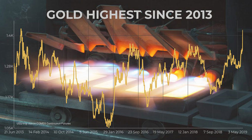 Өнгөрсөн баасан гаригт алтны үнэ нэг унци нь 1400 ам.долларт хүрч, сүүлийн зургаан жилийн хамгийн өндөр цэгт хүрлээ. Энэ нь ам.долларын ханшийн уналт, бондын өгөөжийн бууралт, геополитикийн тодорхойгүй байдал, худалдааны элдэв хоригтой холбоотой хэмээн “Mining.com” мэдээлэв.