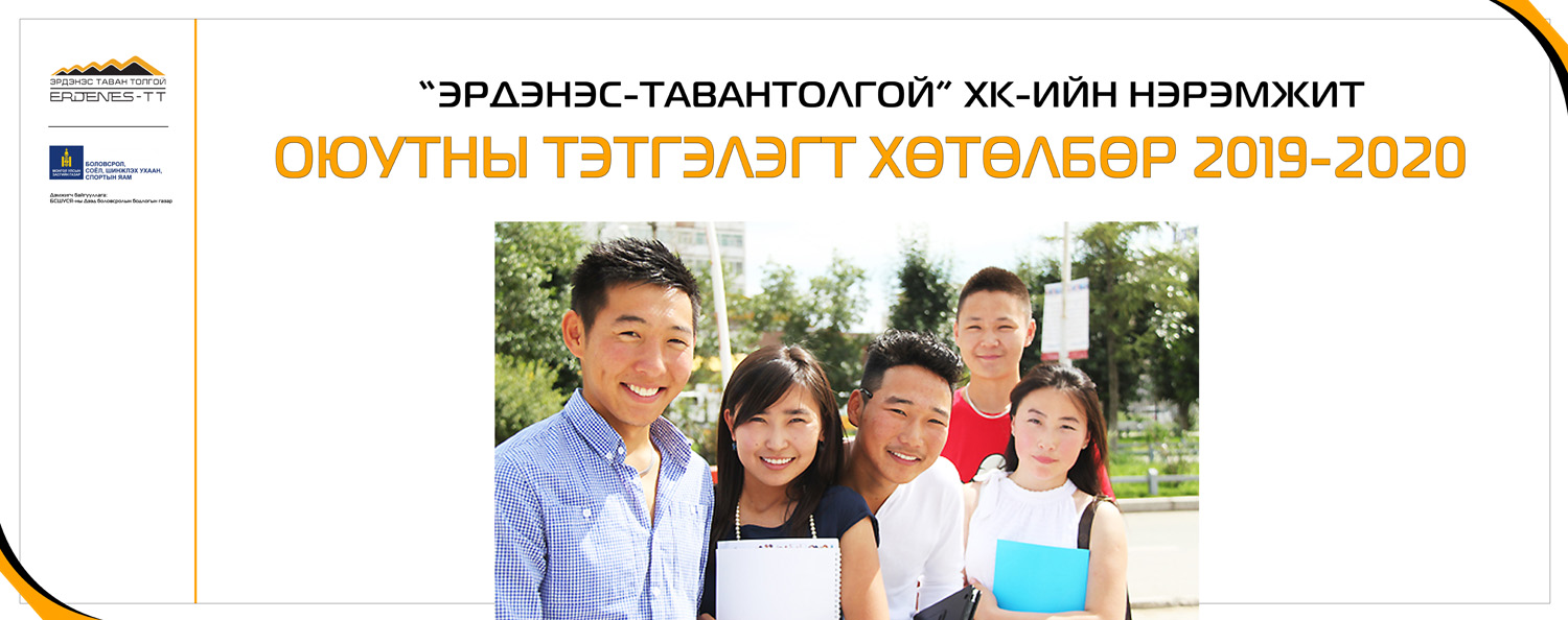 “Эрдэнэс-Тавантолгой” ХК нийгмийн хариуцлагаа хэрэгжүүлэн боловсролын салбарыг дэмжих үйл ажиллагааны хүрээнд жилдээ тэтгэлэгт хөтөлбөрөө 7 дахь жилдээ зарлаж байна.“ЭРДЭНЭС-ТАВАНТОЛГОЙ” ХК-ИЙН НЭРЭМЖИТ “ОЮУТНЫ ТЭТГЭЛЭГТ ХӨТӨЛБӨР” 2019-2020/Улсын хэмжээнд/Дэмжигч байгууллага Боловсрол, соёл, шинжлэх ухаан, спортын яамны Дээд боловсролын бодлогын газар Тавигдах шаардлага: Дараах мэргэжлийн чиглэлээр суралцаж буй магадлан итгэмжлэгдсэн их, дээд сургуулийн бакалаврын хөтөлбөрийн 2,3,4-р курсын өдрийн ангийн оюутан байх.Үүнд: