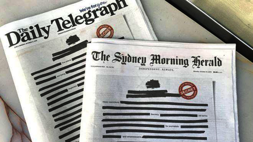 Тус улсын урдаа барьдаг хэвлэлүүд болох “The News Corp Australia”, “Nine mastheads” хэвлэл өнөөдөр өглөөний дугаарынхаа эхний нүүрэн дэх мэдээллүүдийг хар өнгийн цаасаар дарж, “нууцлав” гэсэн шошготойгоор худалдаанд гаргажээ.
