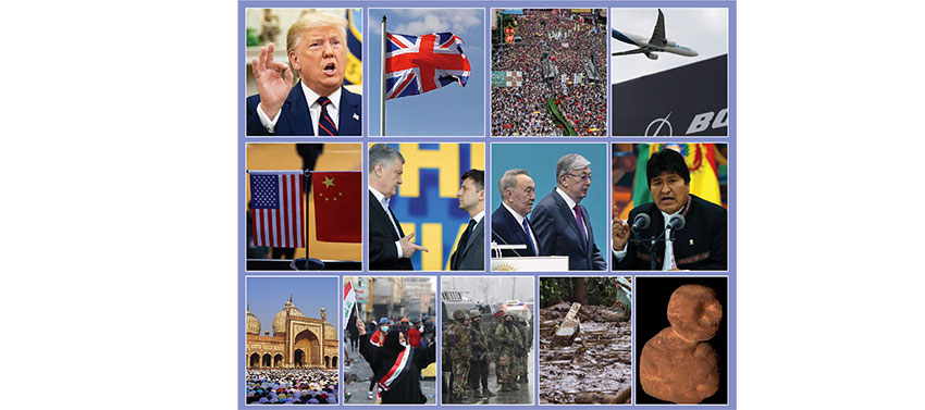 2019 оны 10-р сараас эхлээд Ирак, Чили, Ливан, Иран зэрэг улс оронд засгийн газрын эсрэг жагсаал цуглаан удаа дараа гарав. Тухайлбал, 10-р сарын 1-ний өдөр Ирак улсын нийслэл Багдад хотод Төрийн түшмэдийн авилгалын эсрэг, ажилгүйдлын түвшнийг бууруулахыг шаардсан жагсаал гарчээ. Удалгүй хэдхэн хоногийн дотор дээрх жагсаал цуглаан Иракийн шийт шашинтай хүн ам амьдардаг бүхий л хотуудад дэлгэрсэн. Иракийн цагдаа нар эсэргүүцлийн жагсаалыг хөөн тараах гэж оролдох үеэр амь үрэгдсэн хүмүүсийн тоо 100 хол давжээ. 10-р сарын 17-нд Ливан улсад эхэлсэн жагсаал цуглаан олон долоо хоног үргэлжилсэн учраас Ливаны суннит шашинт Ерөнхий сайд Саад Харири огцрохоос аргагүйд хүрэв. Ираны засгийн газар тус улсын 100 гаруй хотуудад нэгэн зэрэг гарсан жагсаал цуглааныг дарахын тулд интернетийн үйлчилгээг хаав. Иранд болсон жагсаал цуглааны үеэр 200 гаруй хүн амь үрэгдсэн байна. Латин Америкийн Чили улсад метроны тээврийн тийзний үнийг нэмэгдүүлсний улмаас анх гарсан жагсаал цуглаан хоёр сар ужгирсан учраас Ерөнхийлөгч Себастъян Пинейро тус улсад болох гэж байсан дэлхийн уур амьсгал, дулаарлын асуудлаарх НҮБ-ын томоохон чуулганыг цуцлав. 1-р сарын 23-нд Венесуэлийн сөрөг хүчний удирдагч Хуан Гуайдо гэгч өөрийгөө Венесуэлийн Ерөнхийлөгчийн үүрэг гүйцэтгэгч гэж зарласнаар Венесуэль улсад томоохон хямралын эхлэл тавигдав. Хуан Гуайдог АНУ болон Европын Холбоо дэмжсэний улмаас Ерөнхийлөгч Николаса Мадуро хүнд байдалд орсон ч Венесуэлийн хууль ёсны засгийн газрыг Орос, Боливи, Мексик, Сири, Турк, Иран улс дэмжсэн байна. 12-р сарын эхээр Франц улсын Үйлдвэрчний Эвлэлүүд Тэтгэврийн шинэ хуулийг эсэргүүцсэн жагсаал цуглааныг улс орон даяар явуулж эхлэв. Олон хотуудад иргэдийн амьдралын хэвийн нөхцөл алдагдаж одоо ч уг тэмцэл үргэлжилсээр байна. Энэхүү эсэргүүцэл тэмцэл нь Францын эдийн засагт хүнд цохилт болж аялал жуулчлалын салбар уналтад орж сүйрчээ. Эдгээрээс харахад 2019 он дэлхий дахиныг хамарсан эсэргүүцэл хөдөлгөөн, тэмцлийн жил болж өнгөрлөө гэж хэлж болохоор байна.