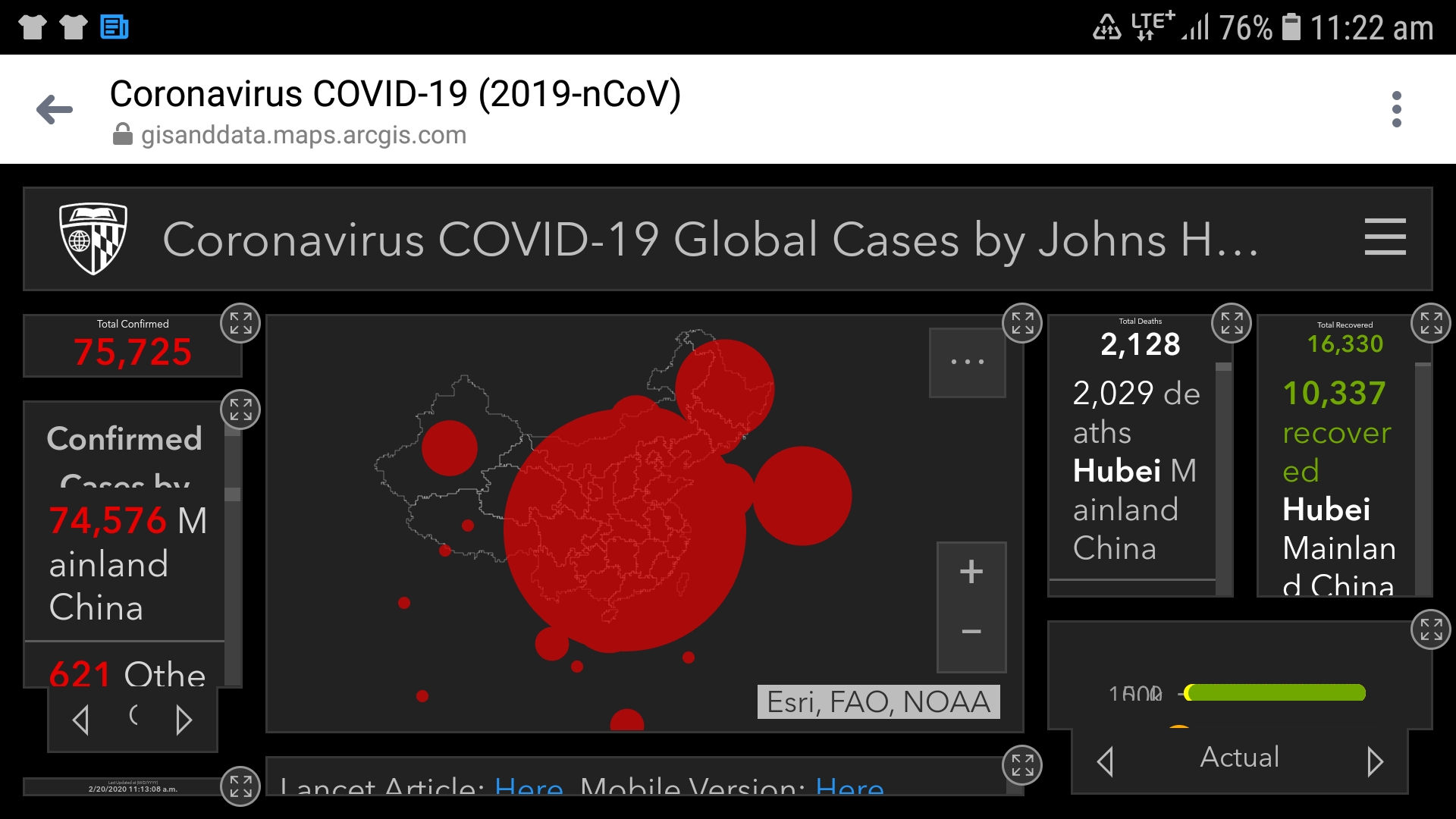 Урд хөршид гарсан коронавирусын халдвар өнөөдрийн/02.20/ 11.00 цагийн байдлаар дэлхийн 29 оронд тархаад байна. Түүнчлэн коронавирусаар нас барагсдын тоо 2009 байсан бол өнөөдрийн байдлаар 2128-д хүрч, халдвар авсан хүмүүсийн тоо 75725 болсон хэмээн БНХАУ-ын мэдээллийн эх сурвалжууд мэдээлжээ. Нас барагсдын олонхи нь халдварын голомт болсон Ухань хотын оршин суугчид байгаа юм. Харин уг өвчнийг эдгээх тодорхой эмчилгээ, эм байхгүй ч эдгэсэн хүмүүсийн тоо 14532 байсан бол 16330 болж өссөн байна. Бусад улс орнуудад халдвар авагсдын тоо /02.20/ 11.00 цагийн байдлаар: Тайланд 35, Япон 71, Өмнөд Солонгос 31, Хонгконг 62, Тайвань 20, Сингапур 81, Малайз 22, Балба 1, Франц 12, ОХУ 2, Канад 7, Итали 3 ОХУ 4, Герман 16, Камбож 1, Шриланка1, Непал 1, Энэтхэг 3, АНУ 8, Швед 1 хүн халдвар авсан тухай мэдээлэл байна.