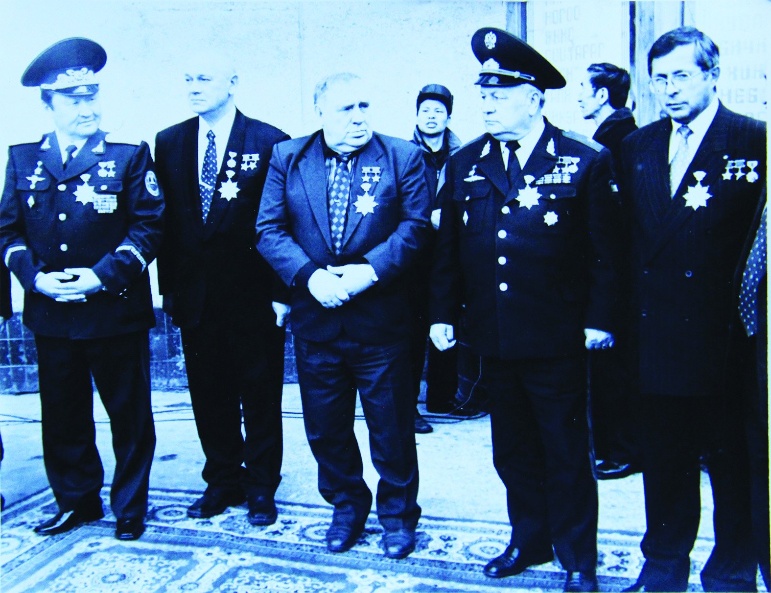Зураг дээр "зүүн гараас"- Ж.Гүррагчаа, В.А.Жанибеков, В.А.Ляхов, В.Горбатко, В.П.Савных