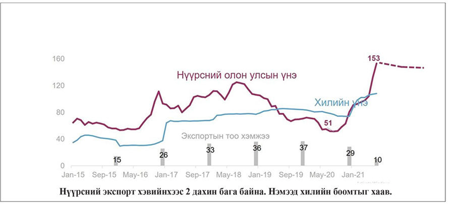 Дотоодын халдвар өндөр байгаа учраас Хятадын зүгээс гол боомт болох Гашуунсухайт дээр нүүрс гаргахгүй гэжээ(Sxcoal). Цар тахалгүй үед өдөрт 2000 машин гардаг байсан боомт сүүлийн саруудад 200 орчим машин гарч байсан. Нүүрсний үнэ гадаад зах зээлд 30 хувиар өссөн энэ үед бид үнийн өсөлтийг ашиглаж, экспортоо нэмэгдүүлж, төсвийн орлогоо өсгөж, эдийн засгаа сэргээх боломж байв.