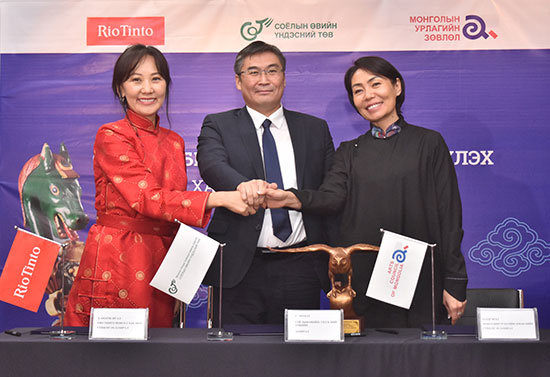 Одоогоор Рио Тинто группийн зүгээс Оюу толгой компаниар дамжуулан Өмнөговь аймгийн Шарцав хэмээх газарт үлэг гүрвэлийн олдвор болон бусад дурсгалт зүйлүүдийг хадгалах хамгаалах, соёлын өвийн менежментийг сайжруулах чиглэлээр хамтран ажиллаж байна. Үүгээр дамжуулан орон нутгийн аялал жуулчлалыг хөгжүүлэхэд нөлөөлөхөөс гадна түүхэн ховор олдворыг нээх, дэлхий нийтэд таниулах ажилд хувь нэмрээ оруулна. Монголын Урлагийн зөвлөлтэй хамтран олон ажлыг хийсээр ирсний нэг нь жил бүр улсын наадмаар “Соёлын наадам”-ыг хамтарч зохион байгуулдаг. Ингэснээр гаднаас ирэх жуулчдад соёлын биет бус өвийг түгээн таниулах, сурталчлахад тодорхой хувь нэмрийг оруулсаар ирсэн. Бага театр байгуулах манай гурван талт хамтын ажиллагаа цаашид улам баттай оршсоор байх болно.