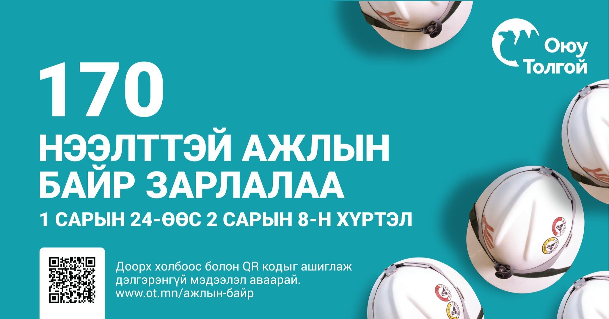Тэгвэл гүний уурхай бүрэн ашиглалтад орсонтой холбоотойгоор Оюу толгой компани 170 нээлттэй ажлын байр зарлажээ.