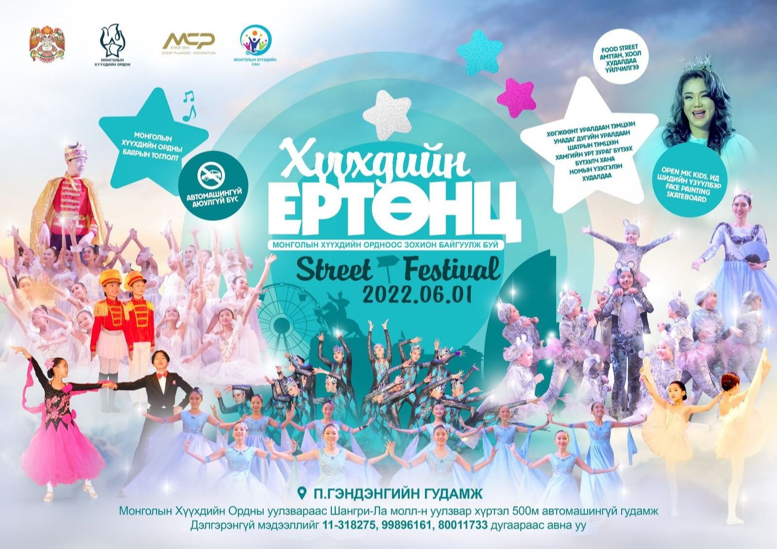 Олон улсын хүүхдийн эрхийг Хамгаалах өдрийг тэмдэглэн өнгөрүүлэх хүрээнд Нийслэлийн ЗДТГ, Монголын Хүүхдийн Ордон, Хүүхдийн сан, Эм Си Пи ХХК хамтран П.Гэндэнгийн гудамж буюу Баянгол зочид буудлын авто замын уулзвараас Шангри-Ла Моллын хойд уулзвар хүртэлх 500м авто замын хөдөлгөөнийг зургадугаар сарын 1-ний 08:00-20:00 цагийн хооронд хааж, “Хүүхдийн Ертөнц-2022” баярын фестиваль нээлттэй зохион байгуулахаар болсон байна.