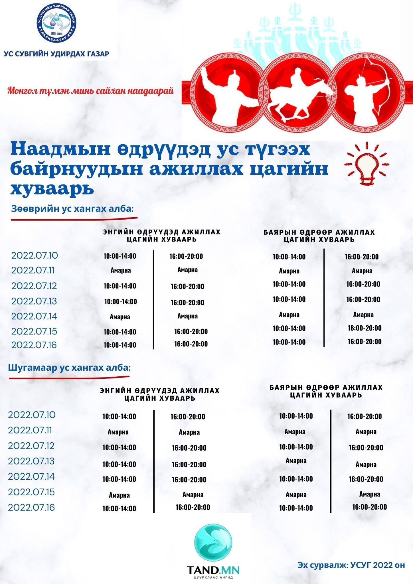 ТАНИЛЦ: Ус түгээх байрууд ингэж ажиллана