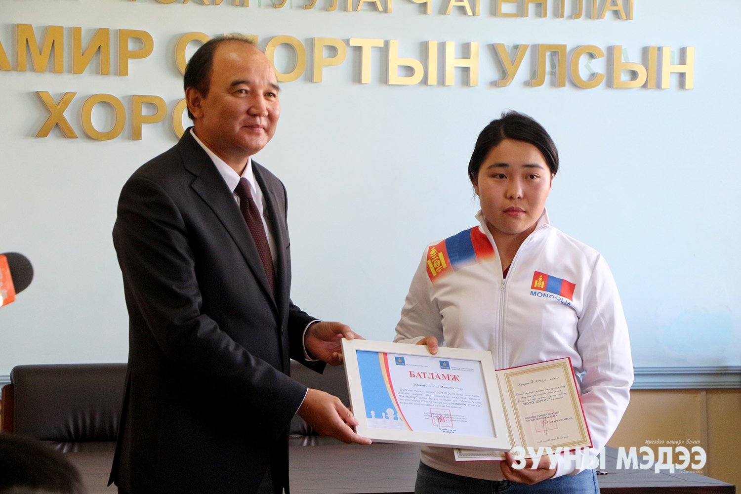 Энэтхэгийн Ченнай хотод болсон дэлхийн шатрын 44 дүгээр олимпиадад амжилттай оролцсон баг тамирчдыг БТСУХ-ны дарга Д.Жаргалсайхан хүлээн авч шагнаж урамшууллаа. Энэ үеэр дасгалжуулагч С.Ган-Од, Д.Батсүрэн, тамирчин Б.Гүндаваа, Г.Амартүвшин, С.Билгүүн, С.Ган-Эрдэнэ, А.Энхтуул, Б.Баярмаа, Т.Мөнхзул, Д.Мөнхзул, Б.Мөнгөнзул нарыг Биеийн тамир, спортын улсын хорооны Жуух бичгээр шагнав. Мөн их мастерын болзол биелүүлсэн Т.Мөнхзулыг Засгийн газрын 2018 оны 173 дугаар тогтоолын дагуу мөнгөн урамшуулал болох 30 сая төгрөгийн батламжийг гардуулав.