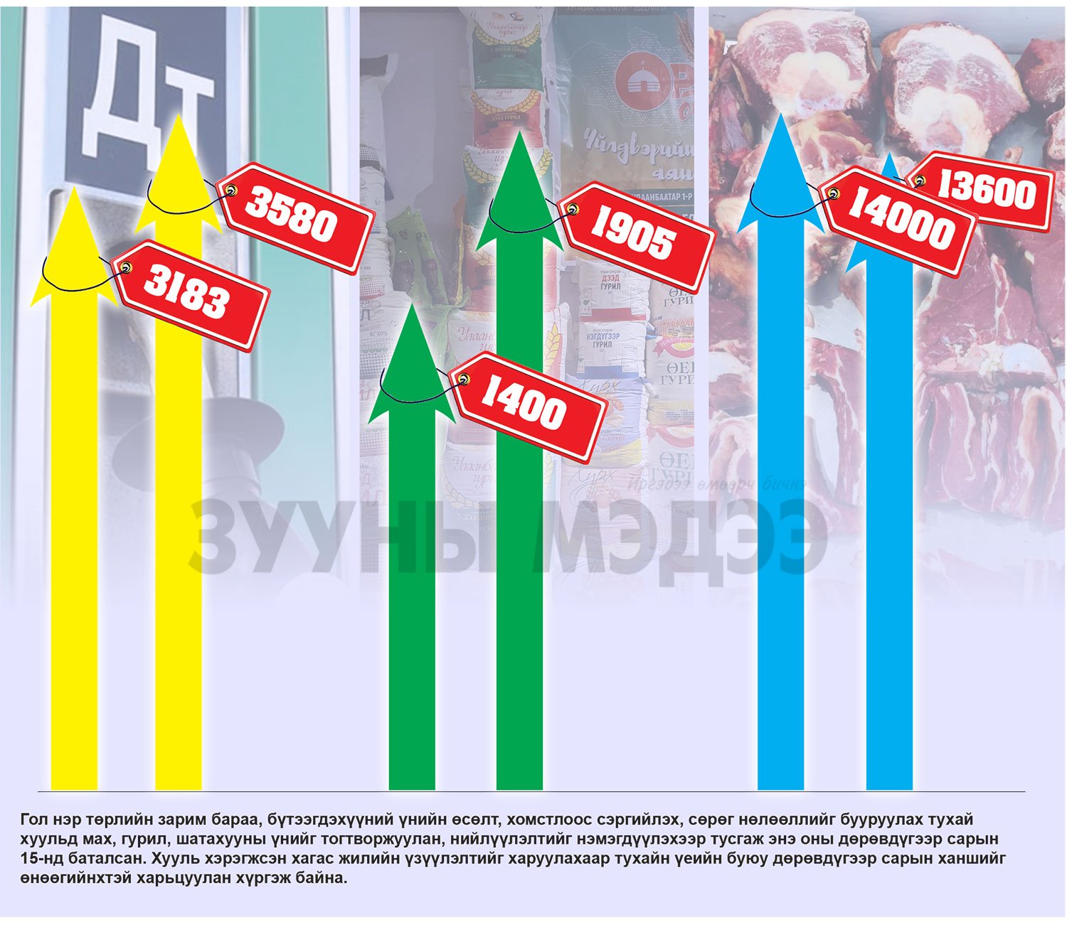 Дэлхий нийт цар тахлын хямралаас өндийгөөгүй байтал геополитикийн сорилттой нүүр тулав. Олон улсын ойлгомжгүй, хурцадмал нөхцөл байдлын сүүдэр үндсэндээ цар тахлаас хэд дахин хүнд бэрхшээлийг бий болголоо. Энэ оны хавар буюу дөрөвдүгээр сард бидний өдөр тутмын “хөдөлгүүр” болсон мах, гурил, шатахууны үнэ Засгийн газар, парламентаас хальж ҮАБЗ-ийн ширээн дээр очтолоо нэмэгдсэнээр шуурхай арга хэмжээ авахаар болсон нь хууль санаачлах гэсэн шийдэл дээр буув. Үндсэндээ, хоёр жилийн турш иргэдийн нуруун дээр жин дарсан хил, гааль, валютын ханш, инфляцын өсөлтийн туухай улам томорч, хүндэрч ирэв. Уршгаар нь өдөр тутам хэрэглэдэг бараа бүтээгдэхүүний үнэ тэнгэрт хадахтай зэрэгцэн төр мах, гурил, шатахууныг сугалж аваад үнийг нь барих шийдвэр гаргасан. Ингэснээр шатахуун, мах, гурилын үнэ, нийлүүлэлтэд онцгой анхаарна. Ямар ч байсан шатахуунтай байхад бизнес зогсохгүй. Монгол хүн мах, гурилтай байхад өлсөхгүй. Харин бусад нэр төрлийн барааг бүгдийг нь "дийлэхгүй". Махны үнийг тогтворжуулахад долдугаар сар хүртэл нөөцийн махыг хүртээмжтэй байлгаж, үнийг нь барина. Гурилын үнийг тогтвортой байлгахад тариалалтын шат бүрийг хариуцлагажуулна. Хувийн хэвшлүүдээ дэмжиж байж энэ хэцүү цаг үеийн давна гэдгийг тухайн үед Сангийн сайд Б.Жавхлан хэлж байв. Өөрөөр хэлбэл, Засгийн газрын санаачилсан хаврын сизонд галзууртлаа өссөн мах, гурил, шатахууныг зохицуулах Гол нэр төрлийн зарим бараа, бүтээгдэхүүний үнийн өсөлт, хомстлоос сэргийлэх, сөрөг нөлөөллийг бууруулах тухай урт нэртэй хуулийг шуурхай дэгээр оруулж энэ оны дөрөвдүгээр сарын 15-нд баталсан. Нэг ёсондоо нэр заасан гурван төрлийн хэрэглээний бүтээгдэхүүнд зориулсан урт нэртэй хууль хагас жил гаруй хэрэгжээд “хаагдах” учиртай. Хэрэгжиж эхлээд даруй хагас жил болж буй хууль энэ оны төгсгөлд хүчингүй болно. Тэгвэл өргөн хэрэглээний бараа бүтээгдэхүүний үнэ, нийлүүлэлтийг хязгаарлах хууль хэрэгжих хугацаанд мах, гурил, шатахууны үнэд ямар өөрчлөлт оров. Төр хуулиар зохицуулж, тогтворжуулж чадав уу гэдгийг харуулах нэг үзүүлэлт бол үнийн хэлбэлзэл юм.