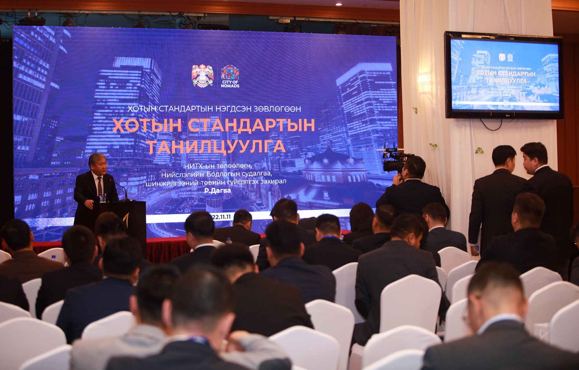 Энэхүү хэм хэмжээ, стандартыг таниулах, мэдээлэл өгөх, холбогдох төрийн болон төрийн бус байгууллагуудын дунд, урт хугацааны хамтын ажиллагааны цар хүрээг тодорхойлохоор Хотын стандартын нэгдсэн зөвлөгөөнийг өнөөдөр зохион байгуулж, хэлэлцүүлэг өрнүүллээ.