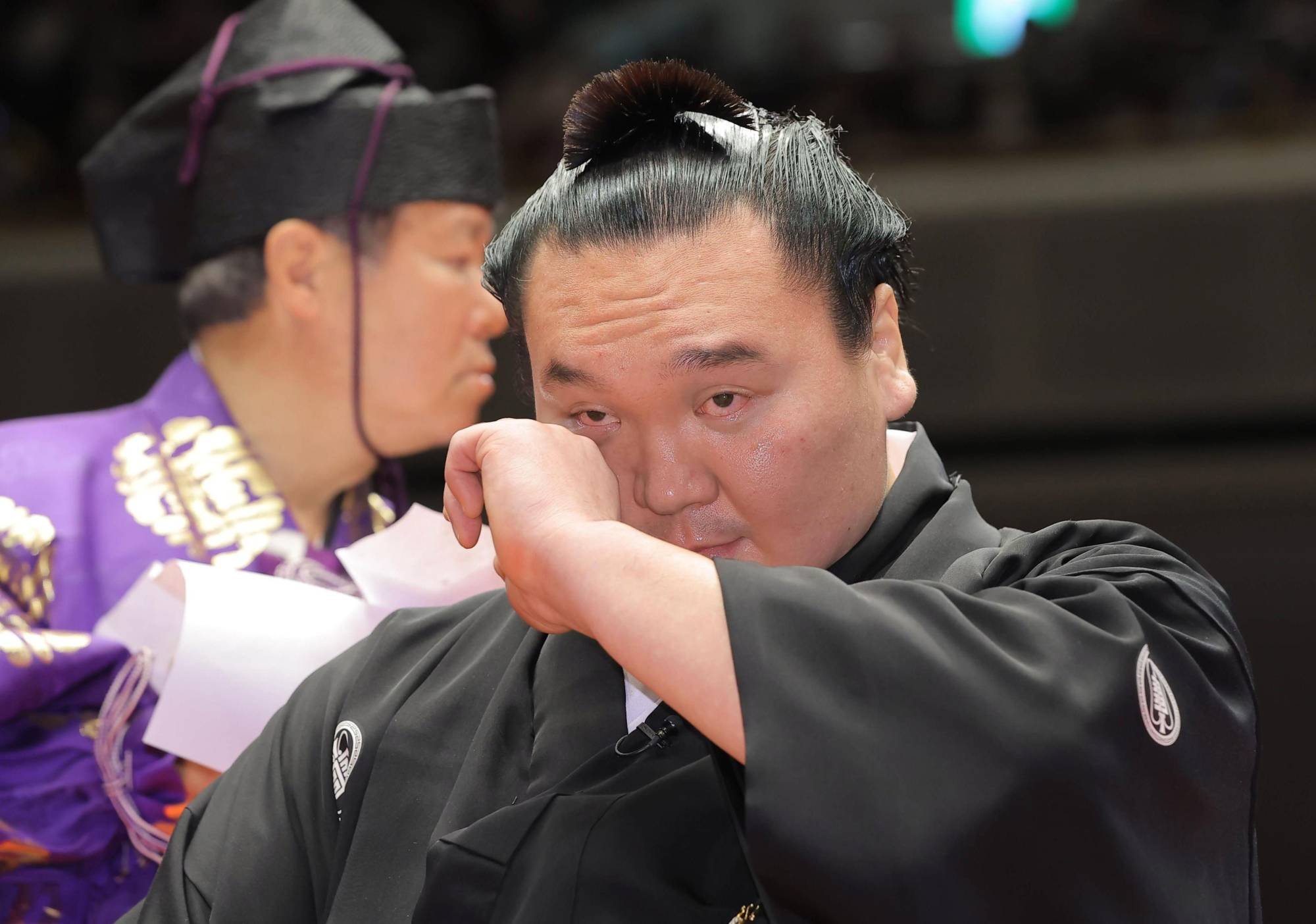 Сумогийн дэвжээн дээр Бадмаанямбуугийн Бат-Эрдэнэ аварга Монгол Улсын Ерөнхий сайдын цомыг үүрд хадгалуулахаар ёкозүна Хакуход гардуулж байна. Монгол, Японы ард түмний бахархал болсон хоёр эрхэм, үндэсний бөхийн хамгийн олон түрүү хүртсэн хоёр оргил зэрэгцэн зогсч байна. Ёкозүна Хакухогийн үсэнд багшийн нь дараа хоёр дахь хүн нь болж Б.Бат-Эрдэнэ аварга гар хүрч байгаа нь хүртэл их хүндэтгэл мөн байлаа.