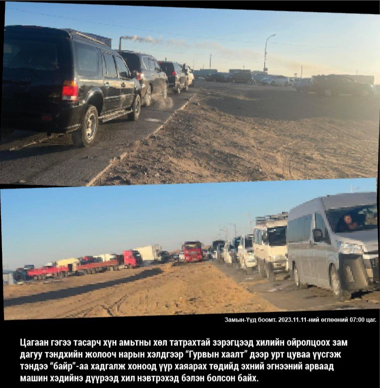 Нийслэлээс 650 гаруй км замыг хугас өдөр илүү туулсан хүмүүс ихэнхдээ Замын-Үүд боомтод ургах нарыг угтдаг. Бага үдээс өмнө амжаад хилээр нэвтрэхээр төлөвлөж очсон хүмүүс тэнд буудалд, танил тал, хамаатан садангийндаа хоноглоно. Цаана нь цөөнгүй хэсэг нь машиндаа нүдний хор гаргаад үүр цүүрээр “хөдөлдөг” юм байна. Гэхдээ хилээр нэвтрэх тээврийн хэрэгслийн оочер дараалал урд орой нь эхэлдэг. Цагаан гэгээ тасарч хүн амьтны хөл татрахтай зэрэгцээд хилийн ойролцоох зам дагуу тэндхийн жолооч нарын хэлдгээр “Гурвын хаалт” дээр урт цуваа үүсгэж тэндээ “байр”-аа хадгалж хоноод үүр хаяарах төдийд эхний эгнээний арваад машин хэдийнээ зорчигчдоо аваад хил нэвтрэхэд бэлэн болсон байх. Хилийн цэргийн албан хаагч цуваа цэгцлэх сиймхийгээр оочер дарааллаа булаацалдаж өмнө хойноо орохоор жолоо мушгих нь яг л бартаат замын уралдааныг санагдуулна. Тэнд зорчигдын аюулгүй байдал, тав тух хэцүүхэн.