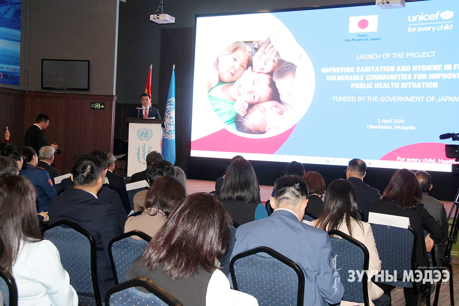 "Улаанбаатар хотын үерийн эрсдэлтэй бүсэд нийгмийн эрүүл мэндийг хамгаалж ус хангамж, ариун цэвэр, эрүүл ахуйн байдлыг сайжруулах нь" төслийн нээлт НҮБ-ын байранд боллоо. Төслийн арга хэмжээг нээж Монгол Улсын Засгийн газрын гишүүн, Монгол Улсын Шадар сайд С.Амарсайхан, Япон улсаас Монгол Улсад суугаа Онц бөгөөд бүрэн эрхт элчин сайд Игавахара Масарү, НҮБ-ын Суурин зохицуулагч ноён Тапан Мишра, НҮБ-ын Хүүхдийн сангийн Монгол дахь суурин төлөөлөгч, ноён Эваристе Коуасси-Комлан нар оролцлоо.
