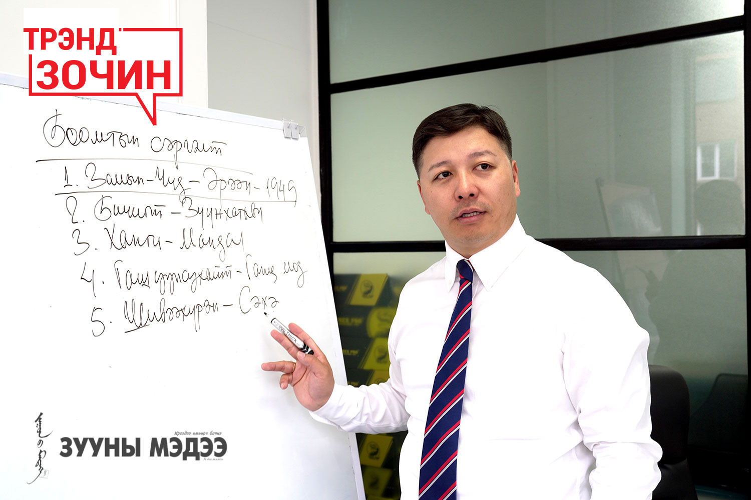 “Зууны мэдээ” сонин цаг үеийн хамгийн эрэлттэй, сонирхол татсан эрхмүүдийг “Трэнд зочин” буландаа онцолдог билээ. Энэ удаагийн зочноор Монголын төмөр зам ТӨХК-ийн төслийн хэлтсийн дарга Т.Сайнжаргалыг урилаа. Эдийн засагч, төмөр замын ашиглалтын инженер гээд аавынхаа хийж байсан, хийхээр суралцаж байсан мэргэжлийг нь эзэмшиж яваа түүнийг хувь хүнийх нь тухайд харуулахыг зорьсон юм.