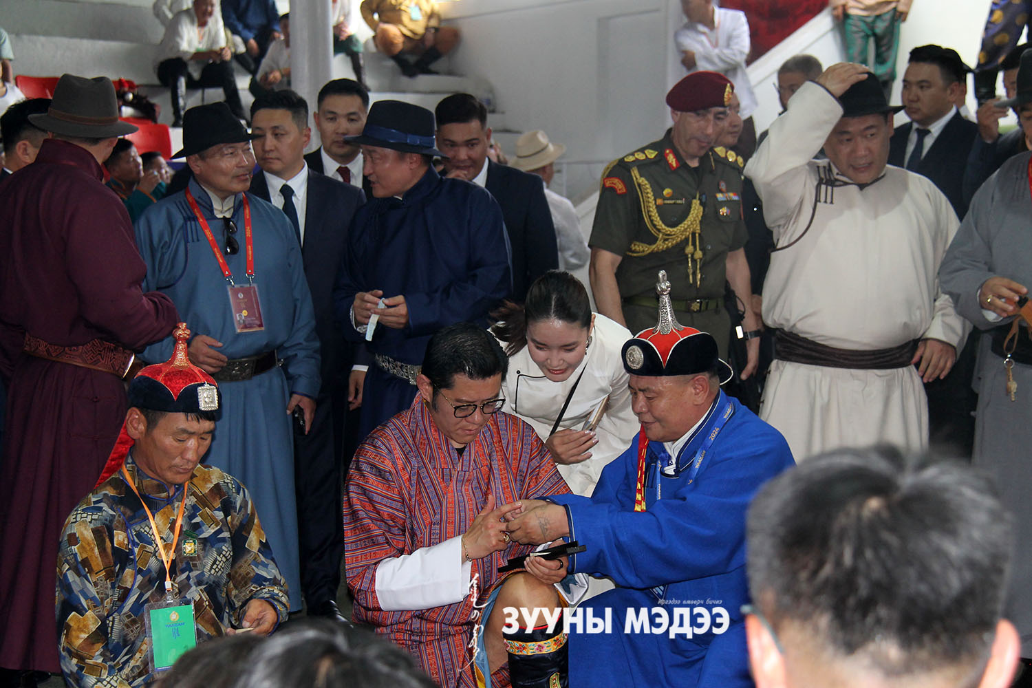 Тулгар төрийн 2233 жил, Их Монгол Улс байгуулагдсаны 818 жил, Үндэсний эрх чөлөө, Тусгаар тогтнолоо сэргээн мандуулсны 113 жил, Ардын хувьсгалын 103 жилийн ойн Үндэсний их баяр наадмын шагайн харваанд аймаг, нийслэл, Европын шагайны холбооны 97 багийн, 776 шагайн харваач оролцож байна. Энэ үеэр Бутаны хаан Жигмэ Гэсэр Намжил Ванчук шагай харваж үзлээ. Энэ тухай гэрэл зургийн сурвалжилгаас харна уу.