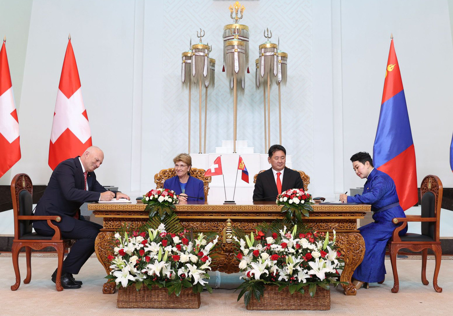 “АРДЧИЛСАН ЗАСАГЛАЛЫН АСУУДЛААРХ МОНГОЛ, ШВЕЙЦАРЫН ХАРИЛЦАН ОЙЛГОЛЦЛЫН САНАМЖ БИЧИГ”-т Монгол Улсын Гадаад харилцааны сайд Б.Батцэцэг, ШХУ-ын Онц бөгөөд Бүрэн Эрхт Элчин сайд Юрг Бурри нар гарын үсэг зурлаа.