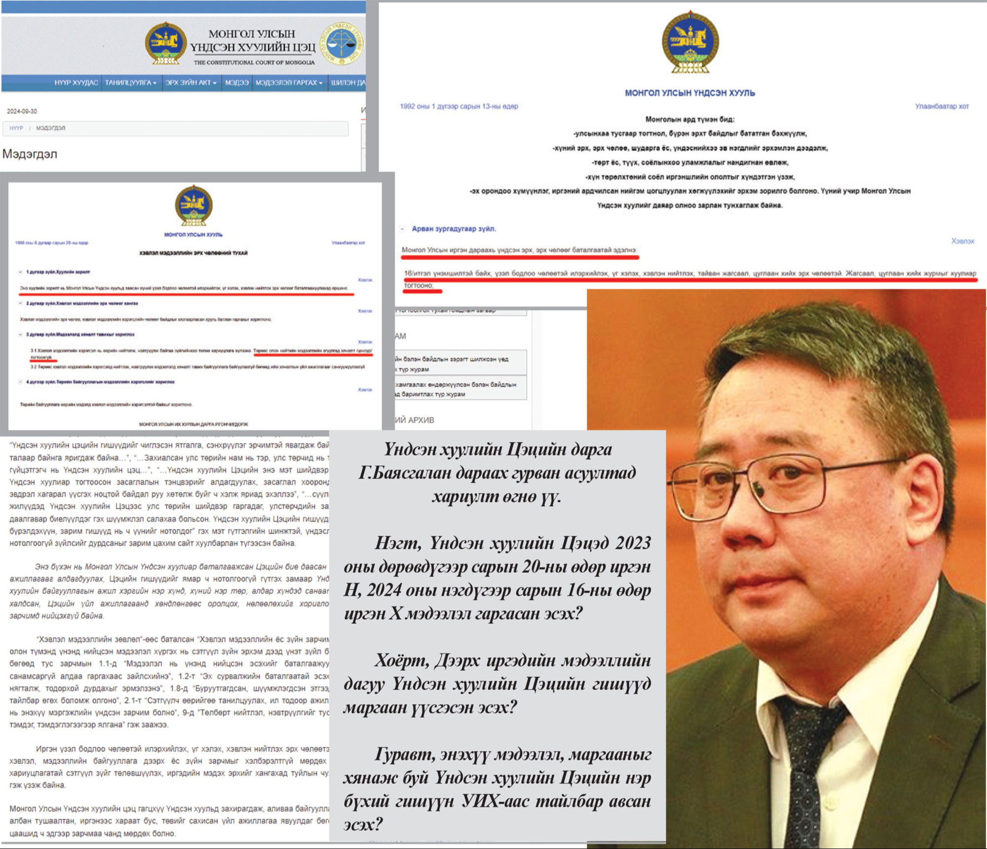 Тиймээс Үндсэн хуулийн Цэцийн дарга Г.Баясгалан дараах гурван асуултад хариулт өгнө үү.